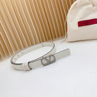 Vlogo Buckle Water Wave Silver Copper Glossy White Leather 20mm Belt