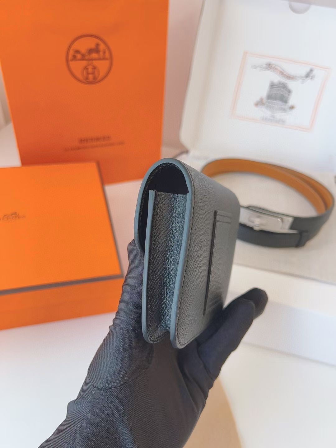 hm kelly belt 18mm with kelly pocket black epsom silver hardware