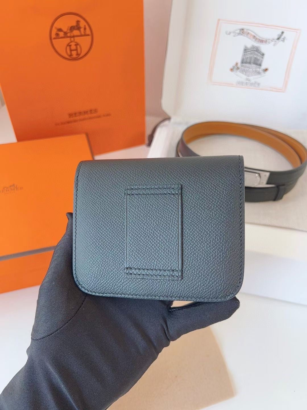 hm kelly belt 18mm with kelly pocket grey epsom silver hardware