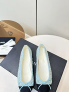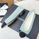Chanel 25 Ballet Flat Blue Black Tweed Frabic 469256