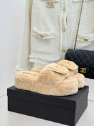 Chanel 25 Buckle Flip-up Thick-soled Slippers Beige Wool 465385