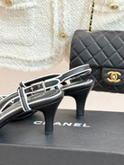 Chanel 25 Slingback Black White Sheepskin 473060