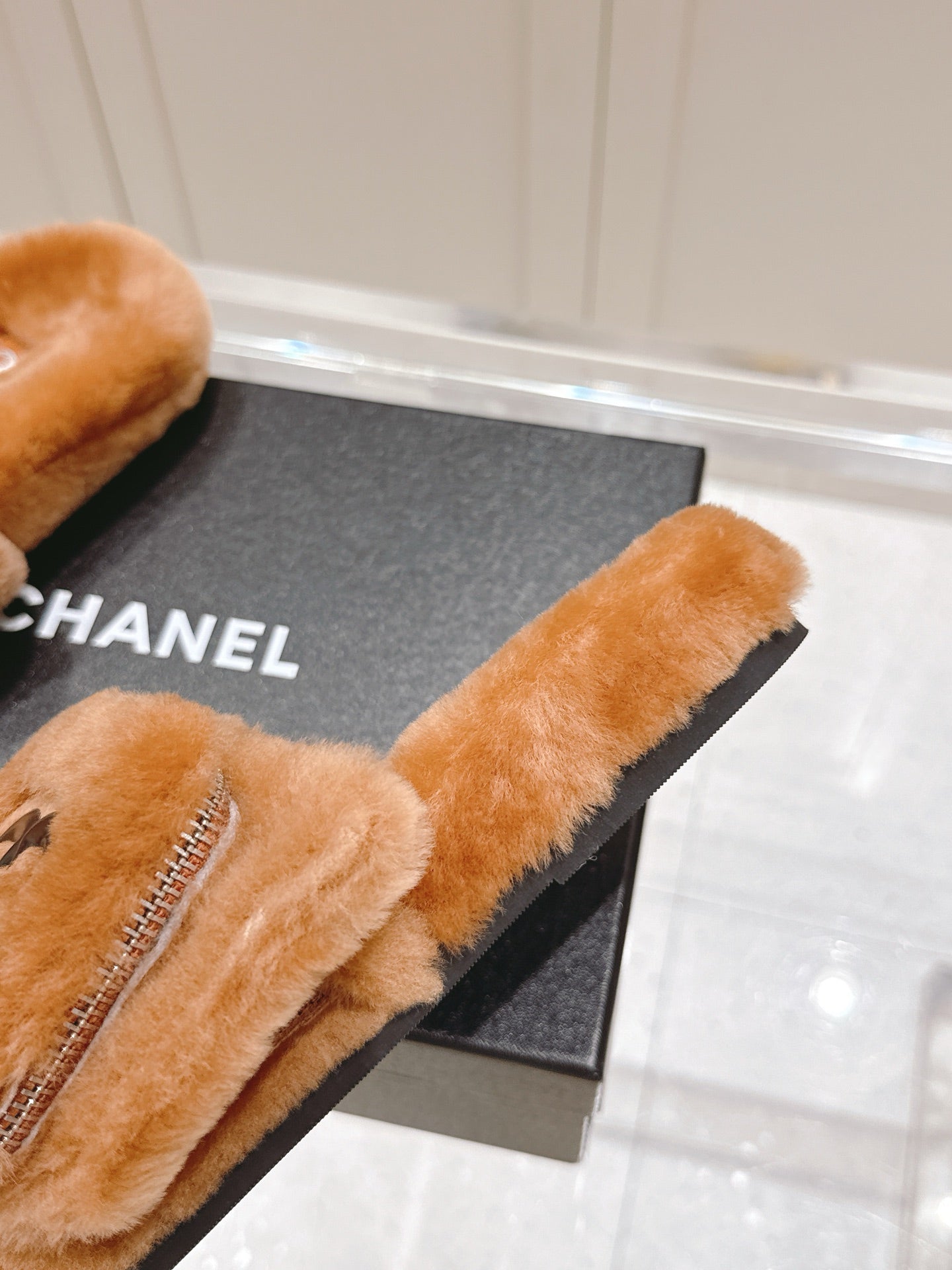 Chanel 25A Early Autumn Slippers Brown Wool 393080