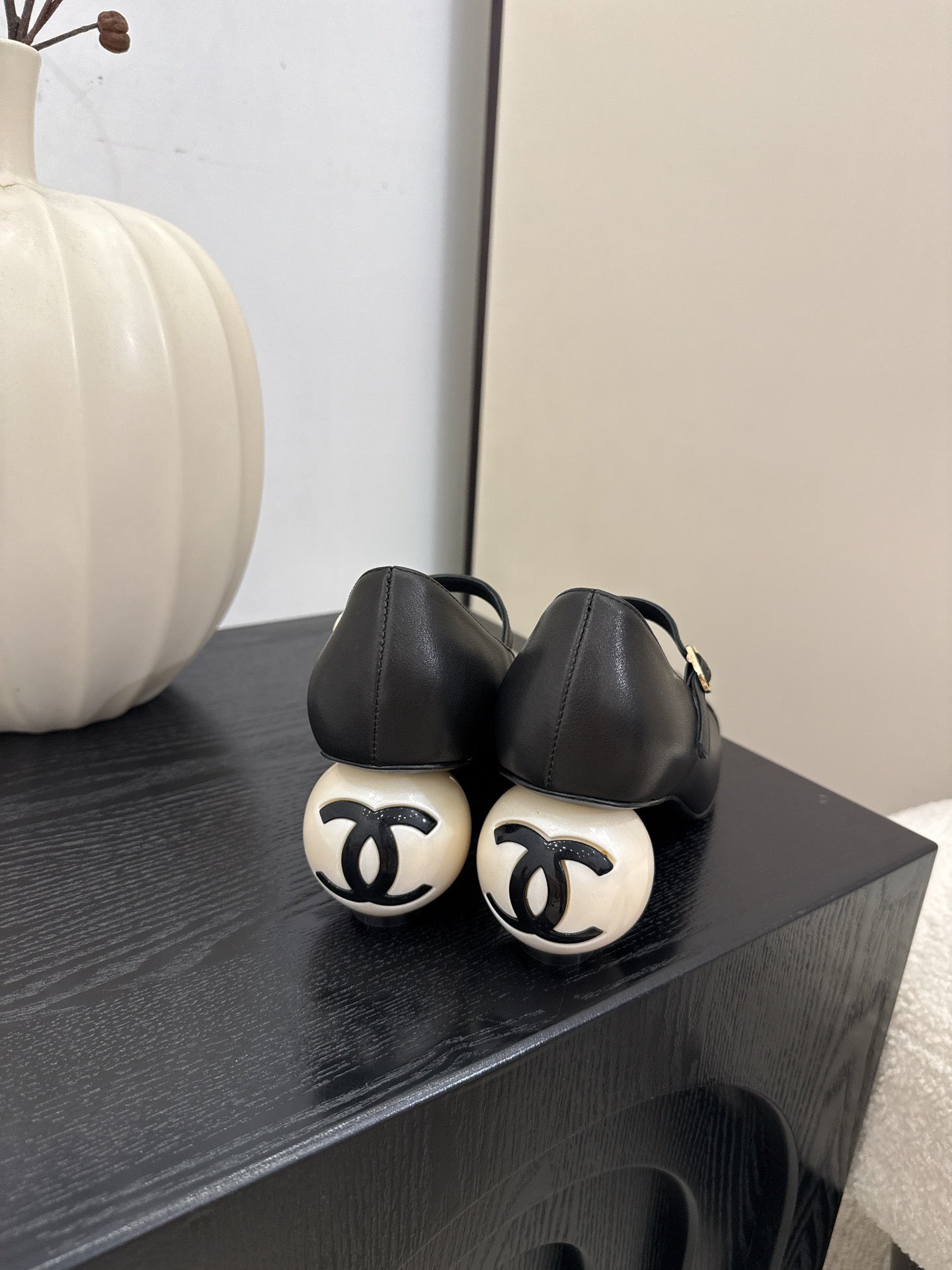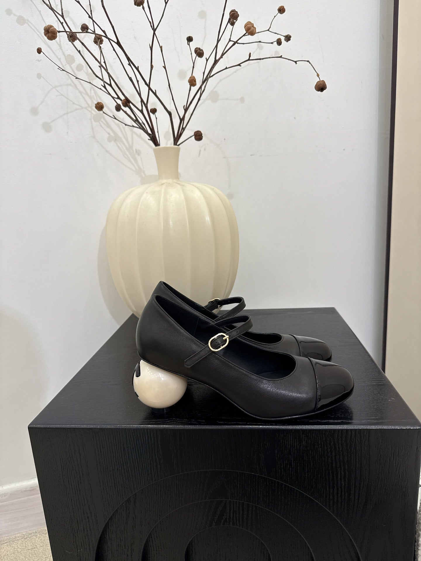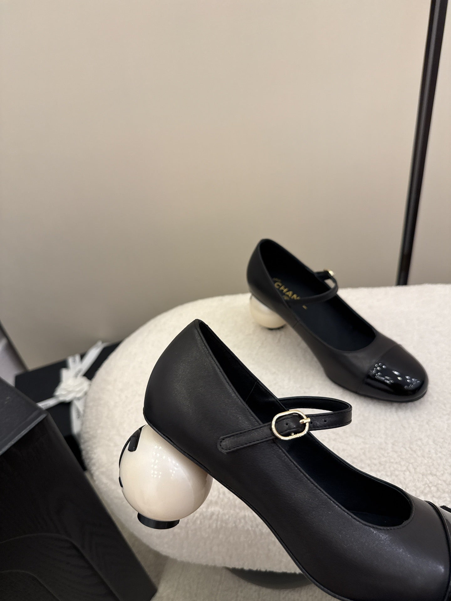 Chanel Mary Jane Pumps with Pearl Heels Black White Leather