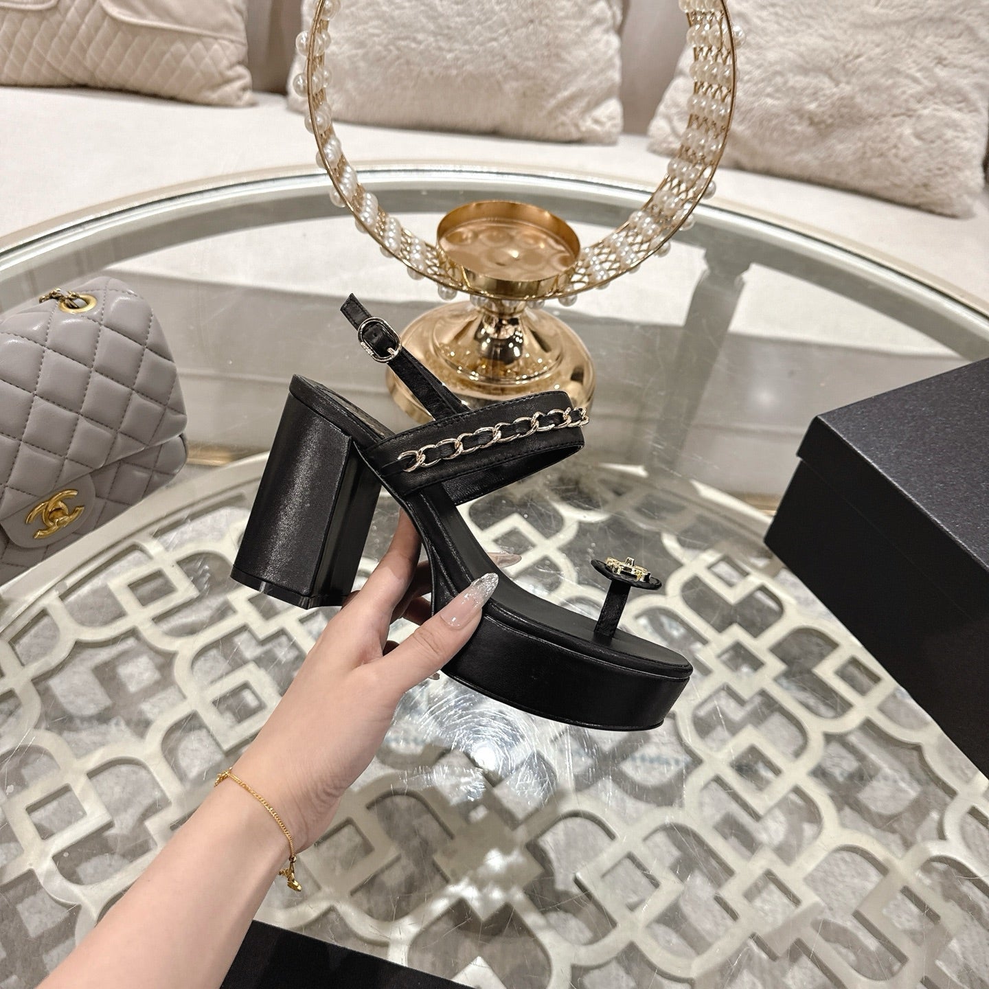 CC 25 Sandal Platform Heels Black Lambskin 268975