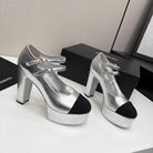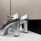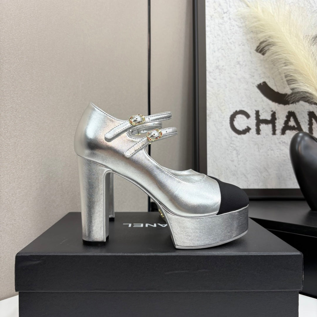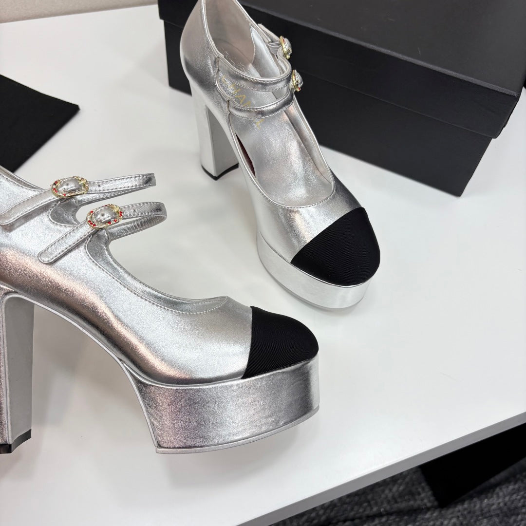 CC 25S Mary Jane Platform 11cm Silver Metalic Calfskin Grosgrain