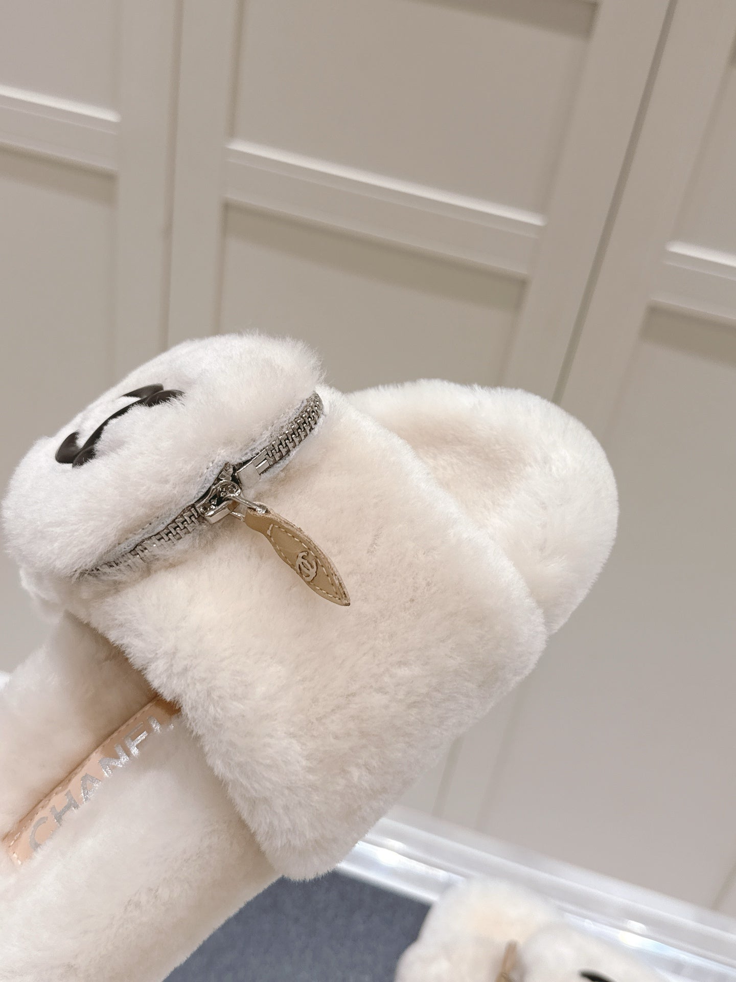 Chanel 25A Early Autumn Slippers Cream Wool 393077
