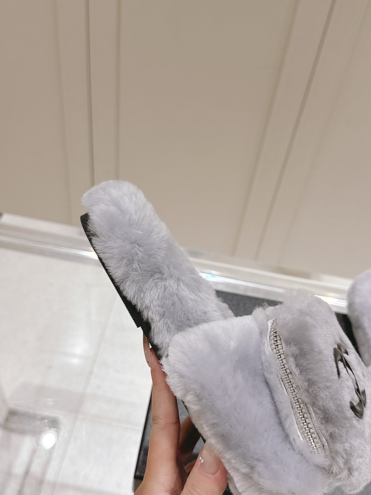 Chanel 25A Early Autumn Slippers Gray Wool 393081