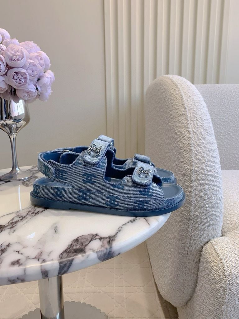 CC 25S Dad Sandal Blue Denim Beige Calfskin