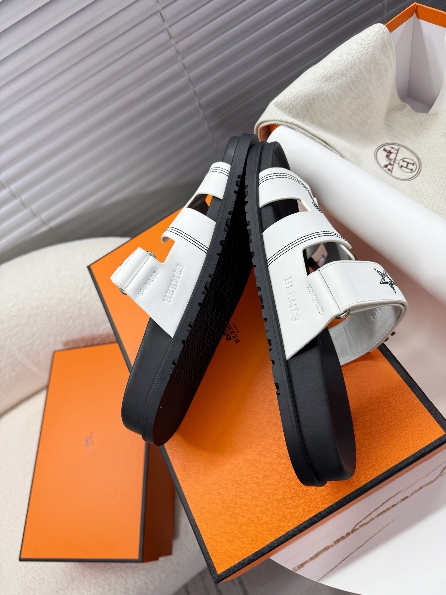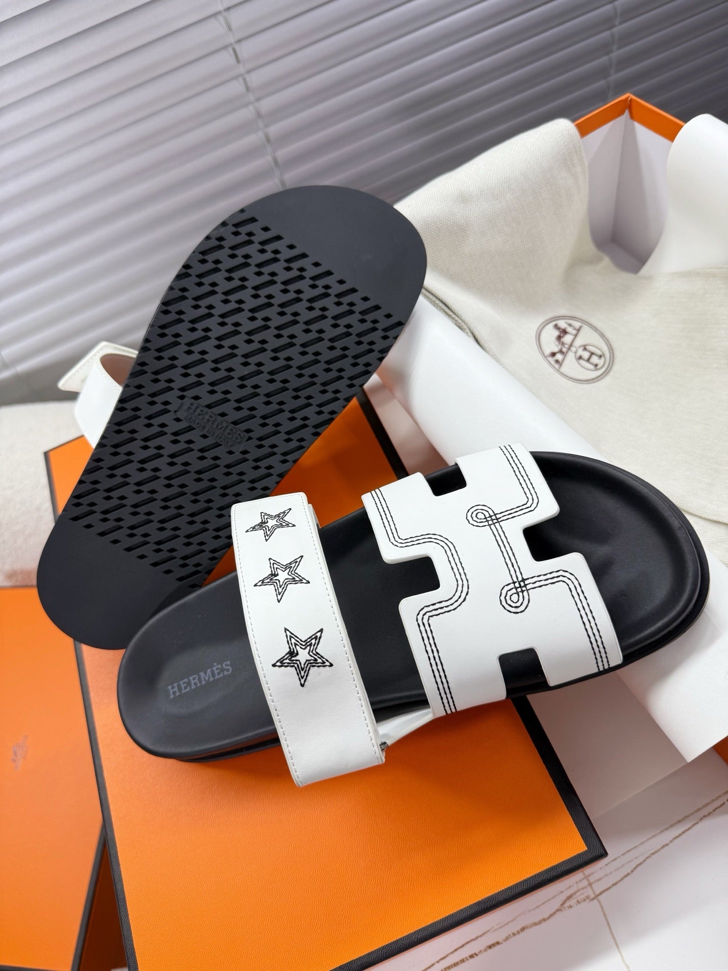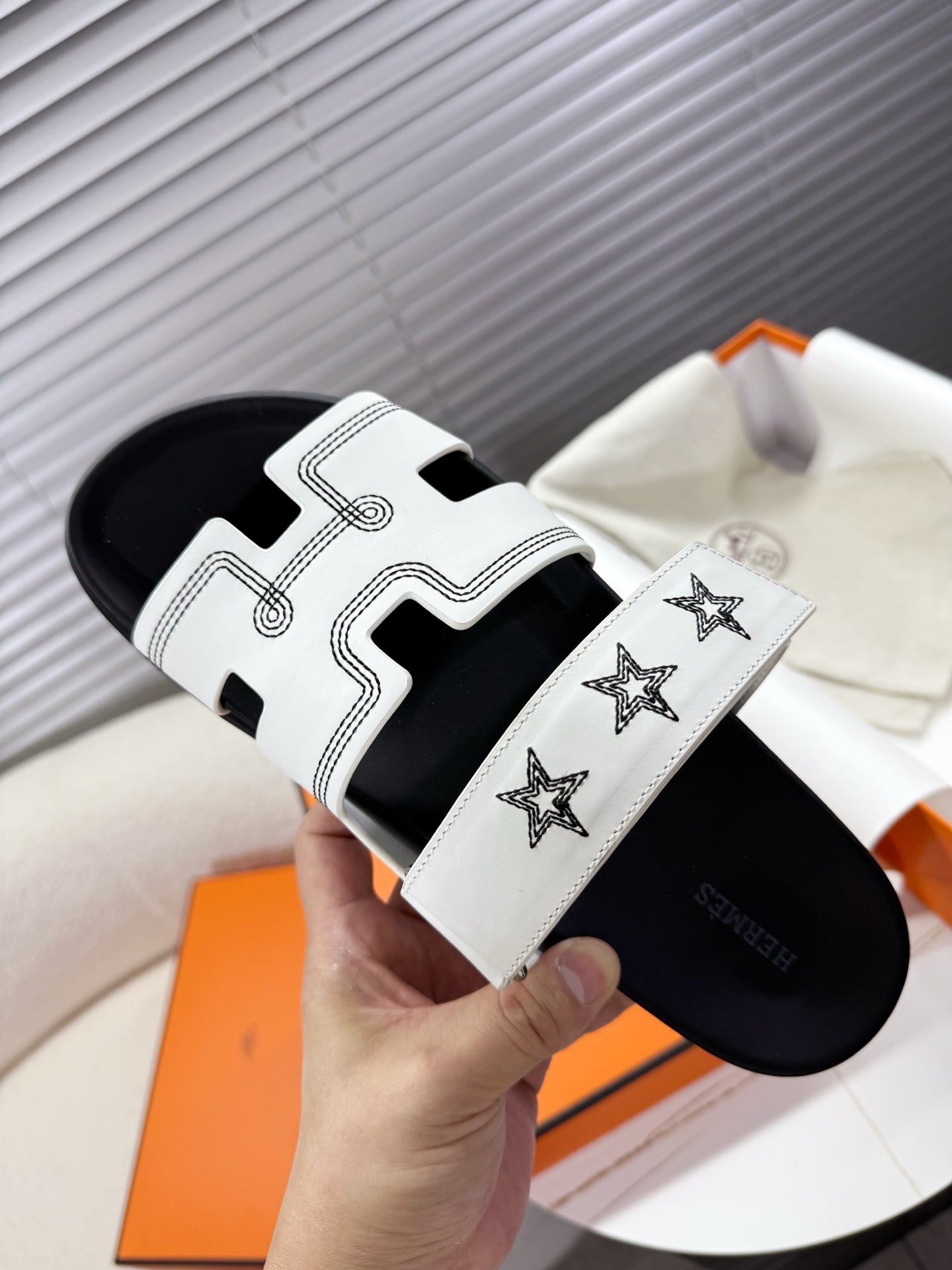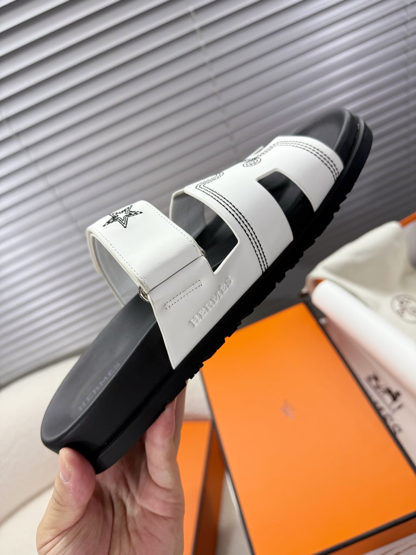 HM Chypre Sandal White Pattern Cowhide 205494