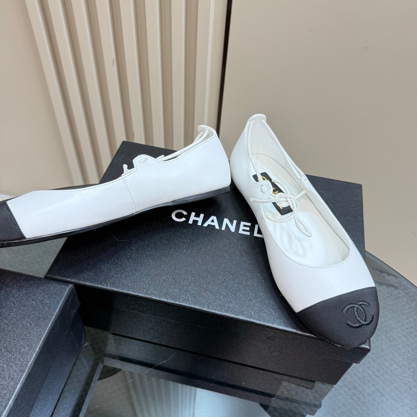 CC 25 Mary Jane Flat White Leather with Fabric 239409