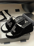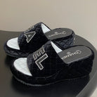 CC 25 Platform Slippers Black Velvet Sheepskin 334240