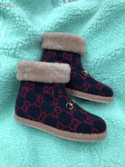 GG Horsebit Snow Navy Blue Red Suede Fleece 576254