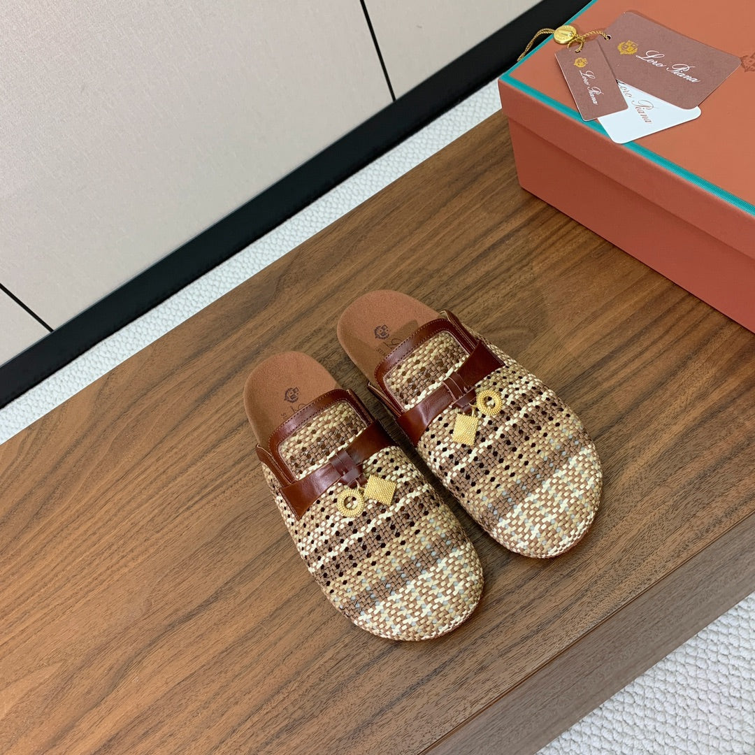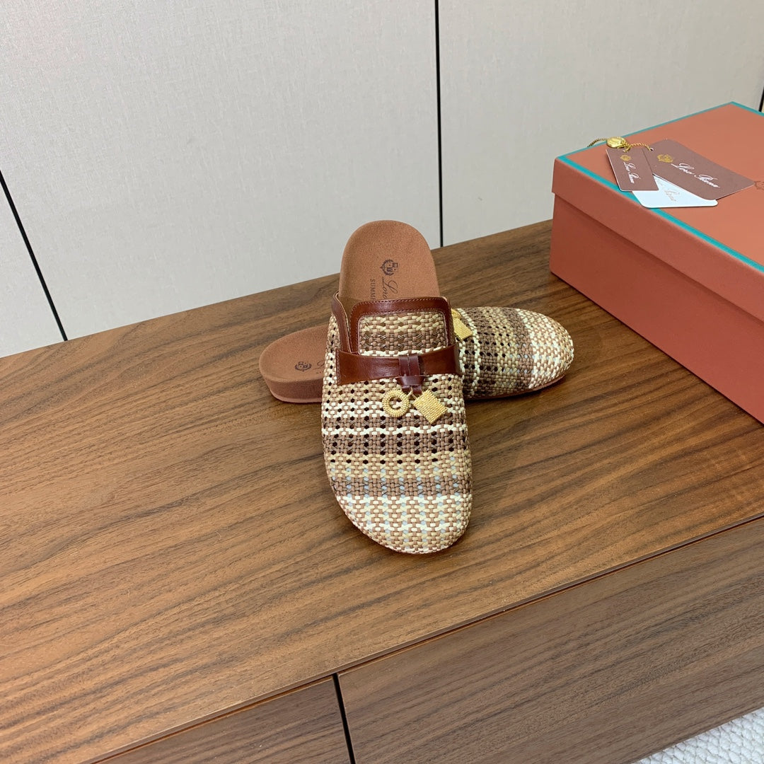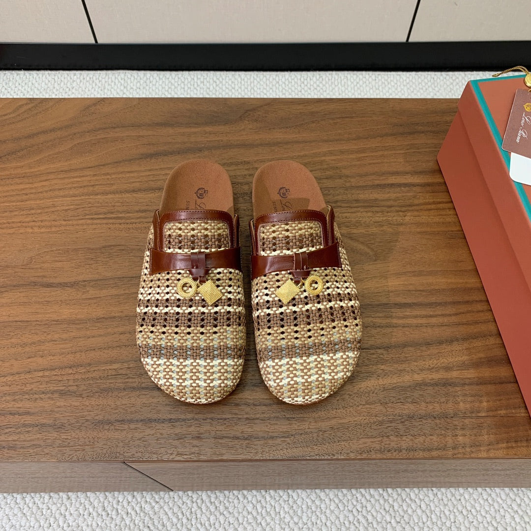 LP Birkenstock slippers brown beige brown raffia calfskin 386728