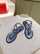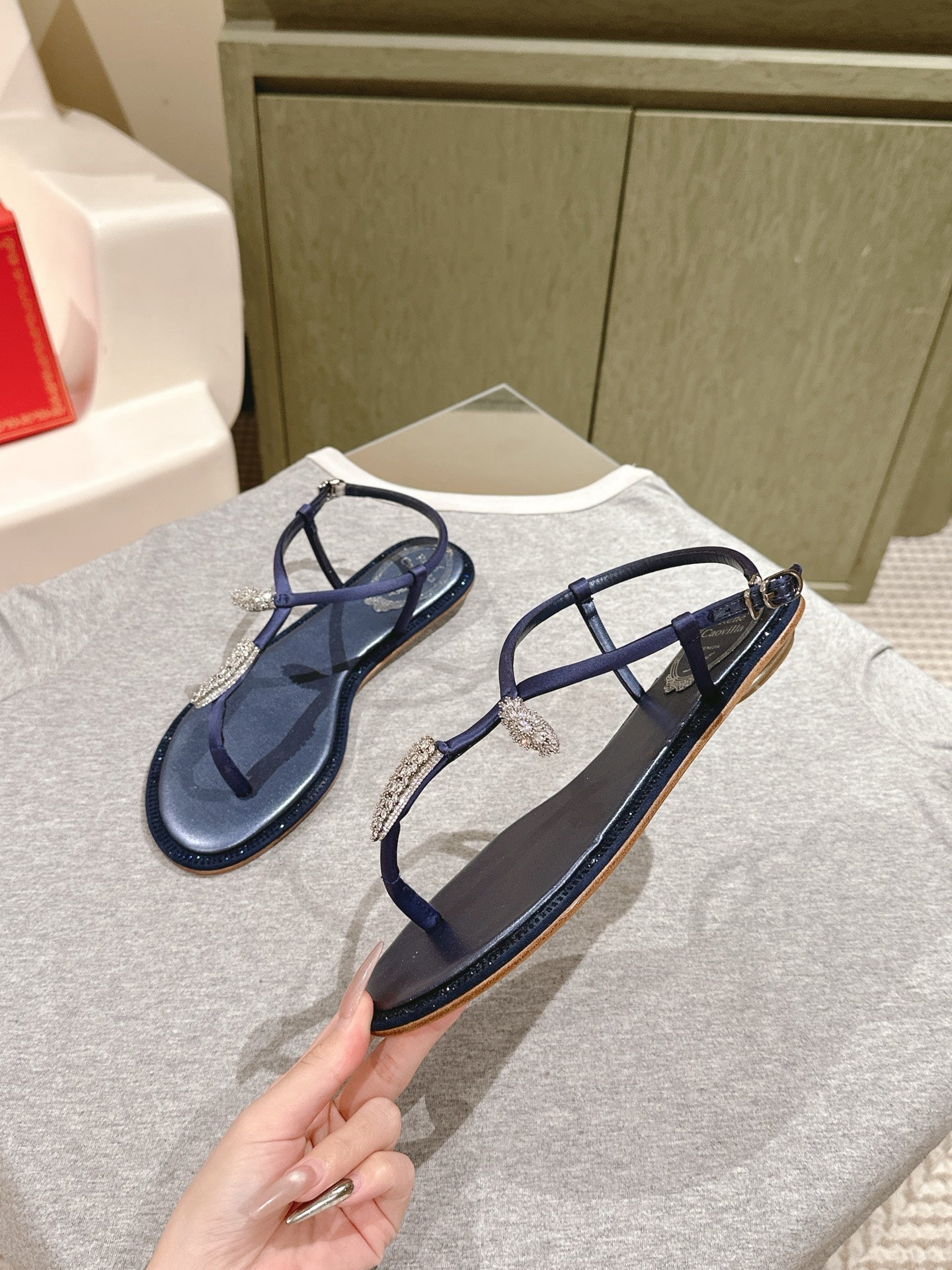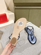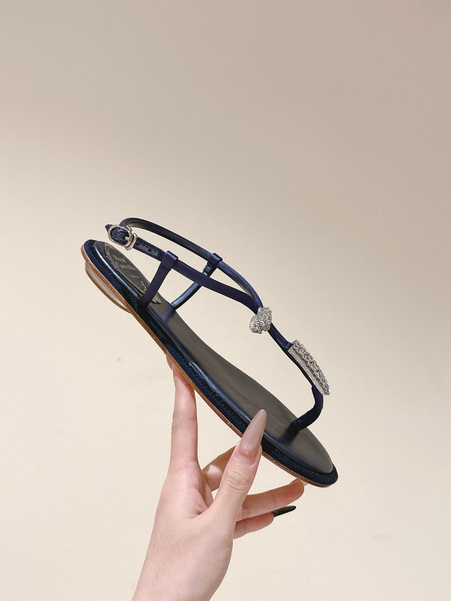 RC 25 Thong Flat Sole Black Silk Rhinestones 347189