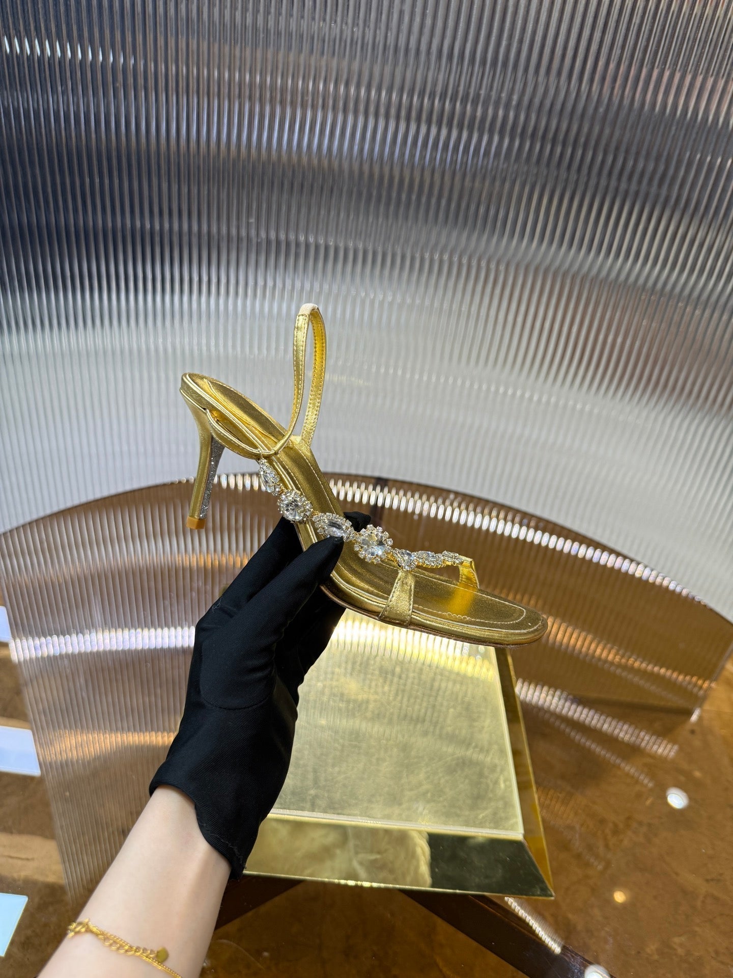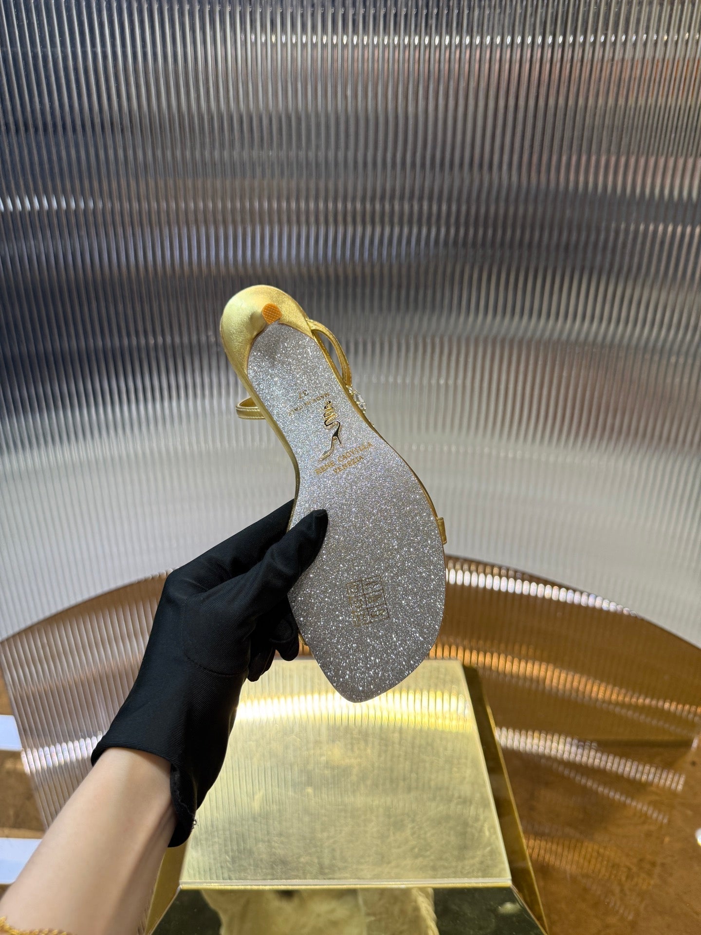 RC 25C Diamond Sandals Gold Sheepskin Rhinestones 314824