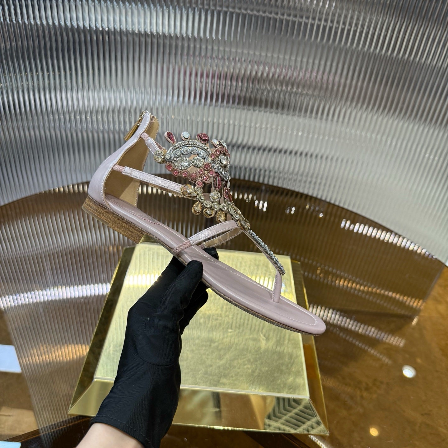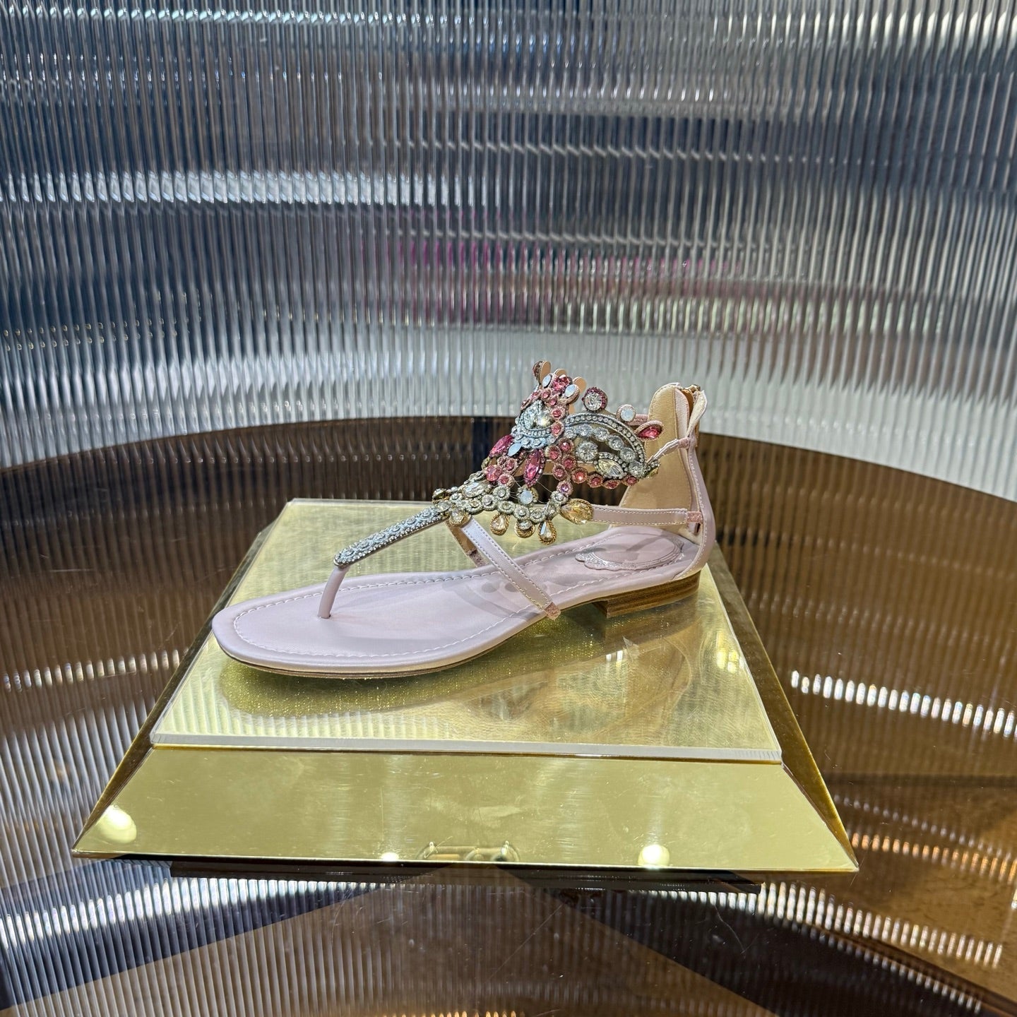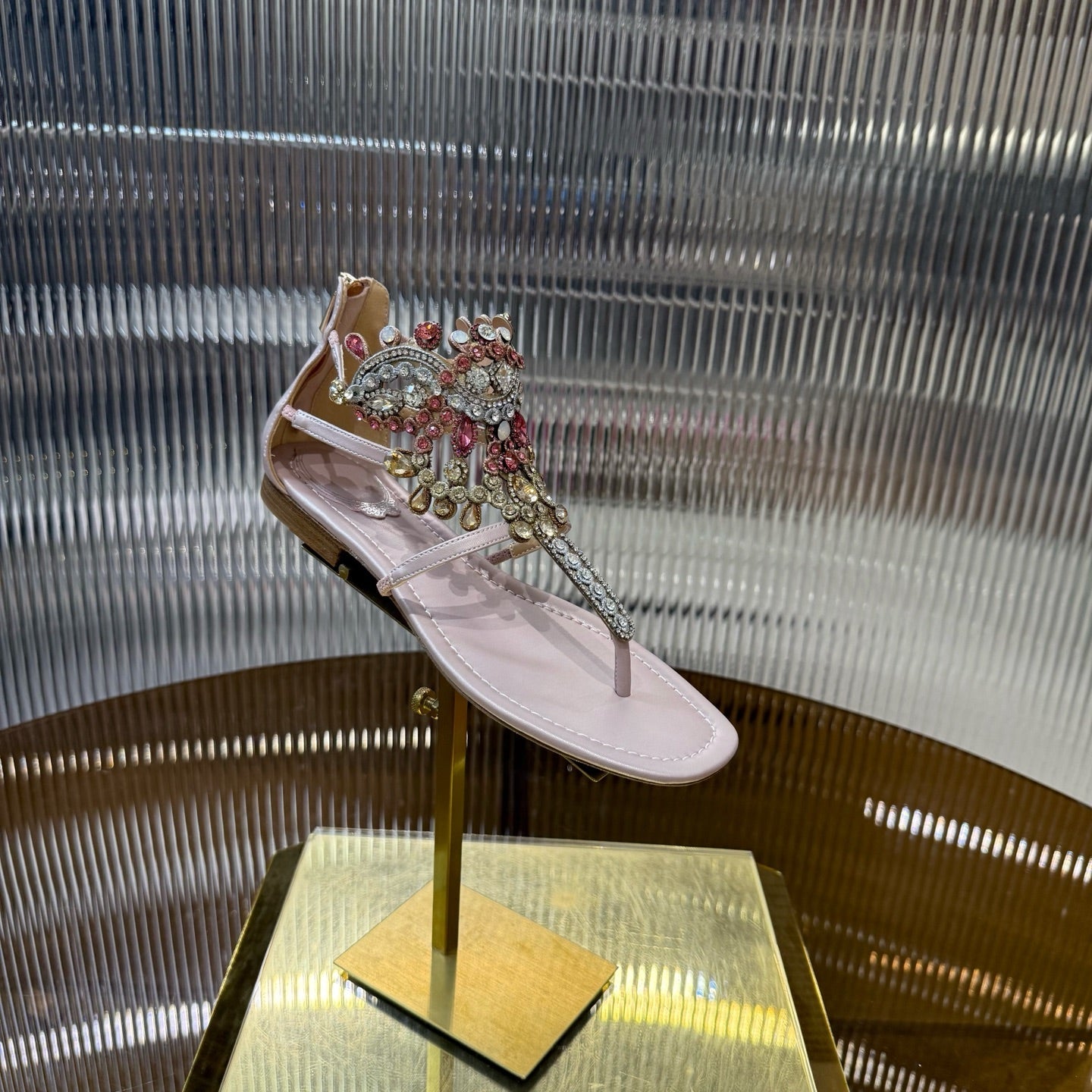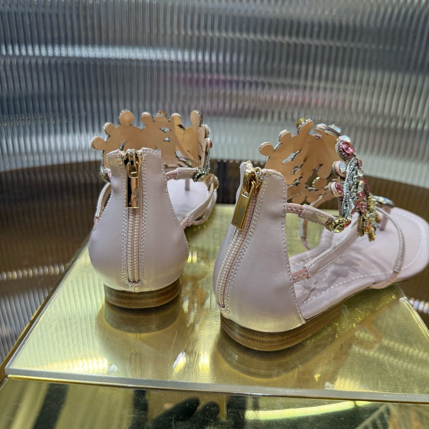RC 25C Thong Diamond Sandals Pink Sheepskin Rhinestone 339503