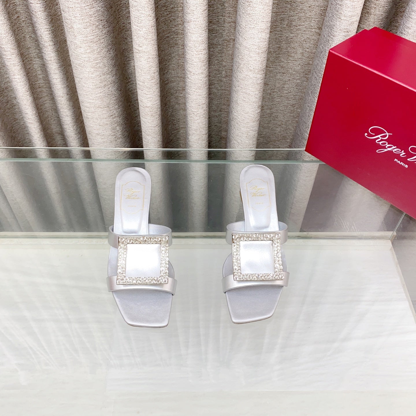 Viv 25 Diamond Mid Heel Slides Silver Cowhide 283037