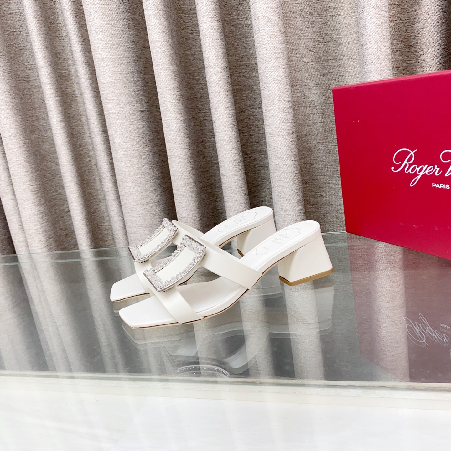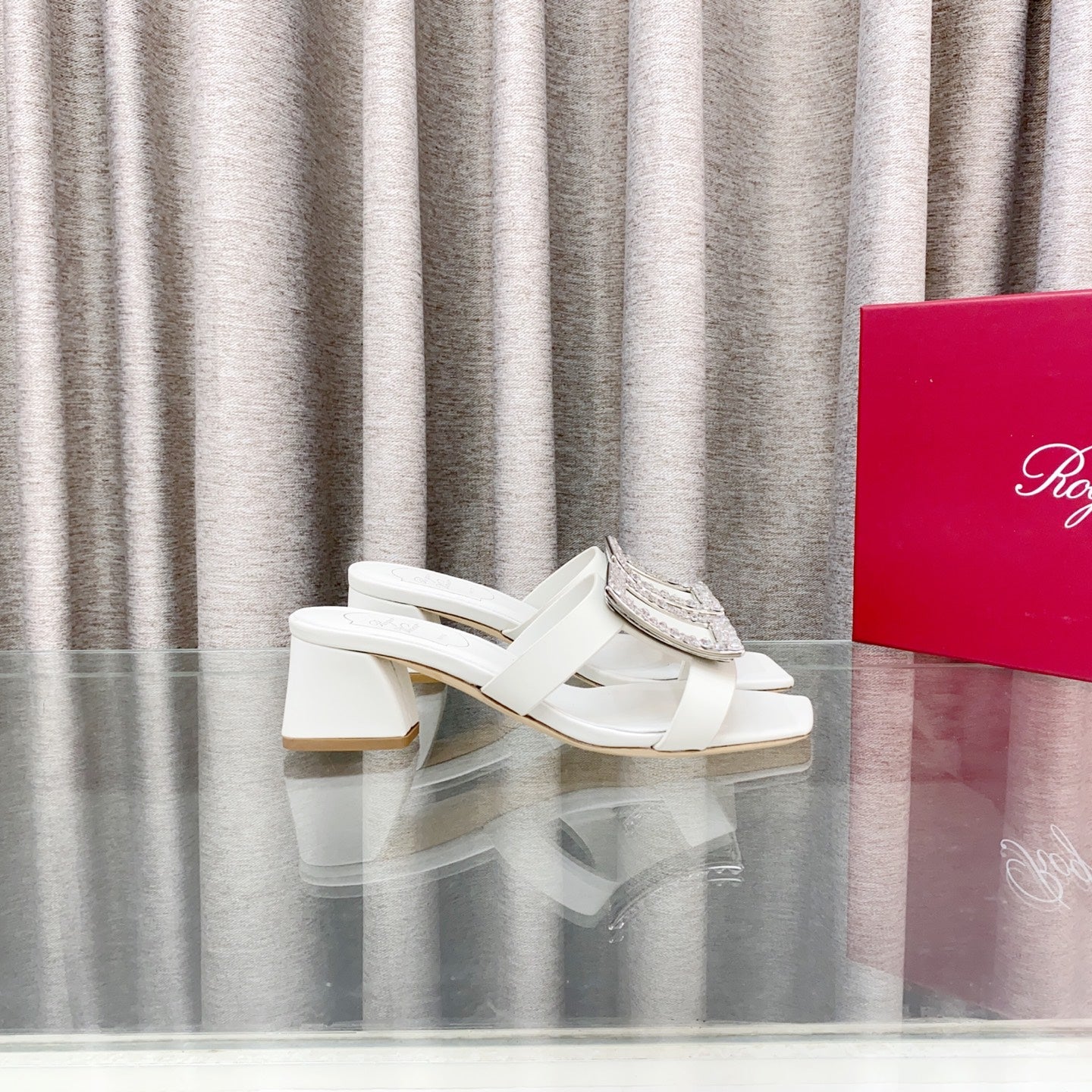 Viv 25 Diamond Mid Heel Slides White Cowhide 283040