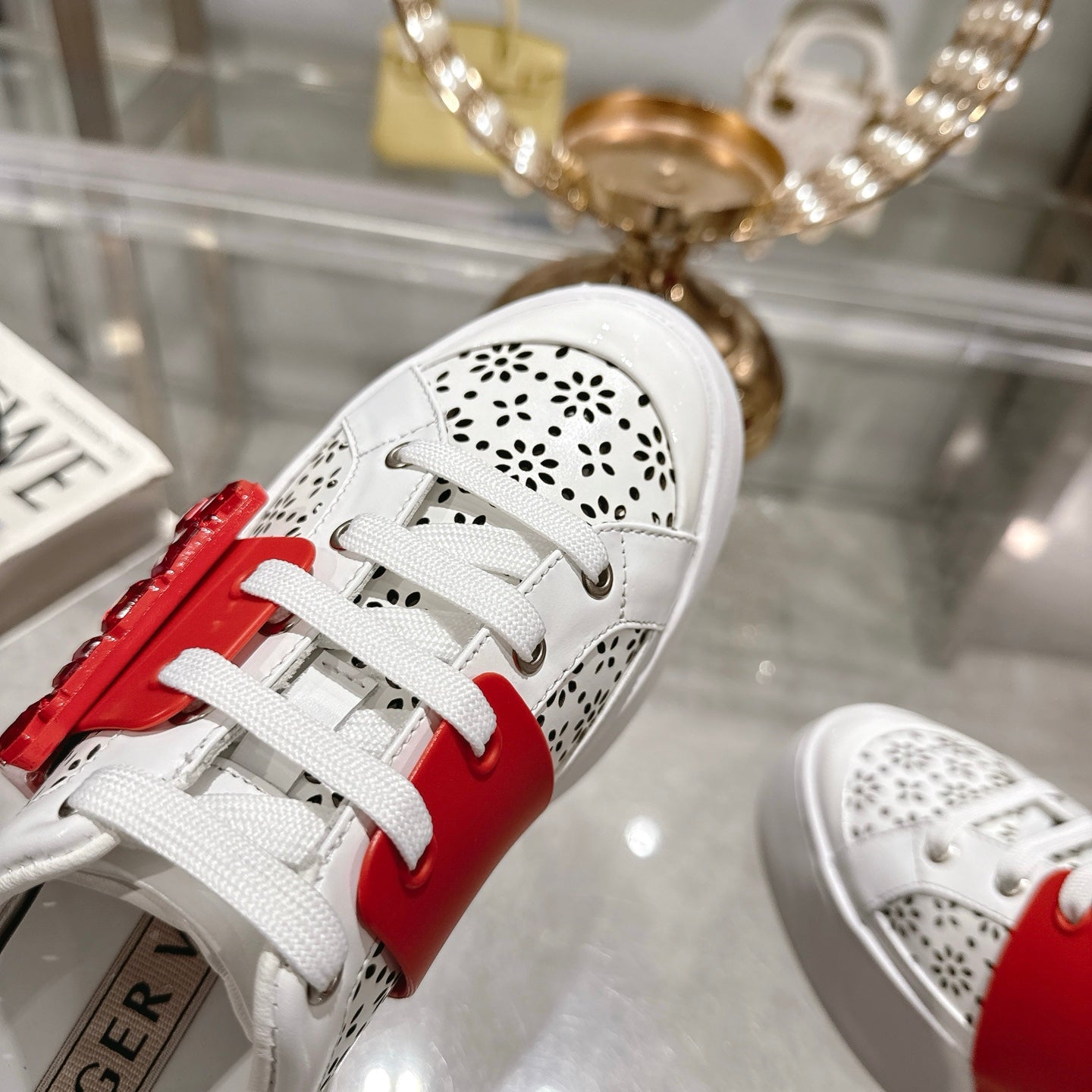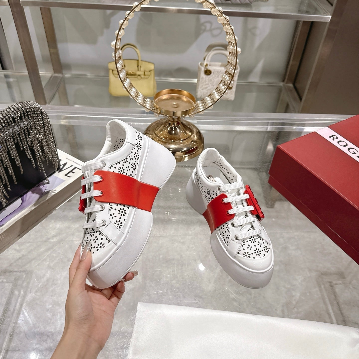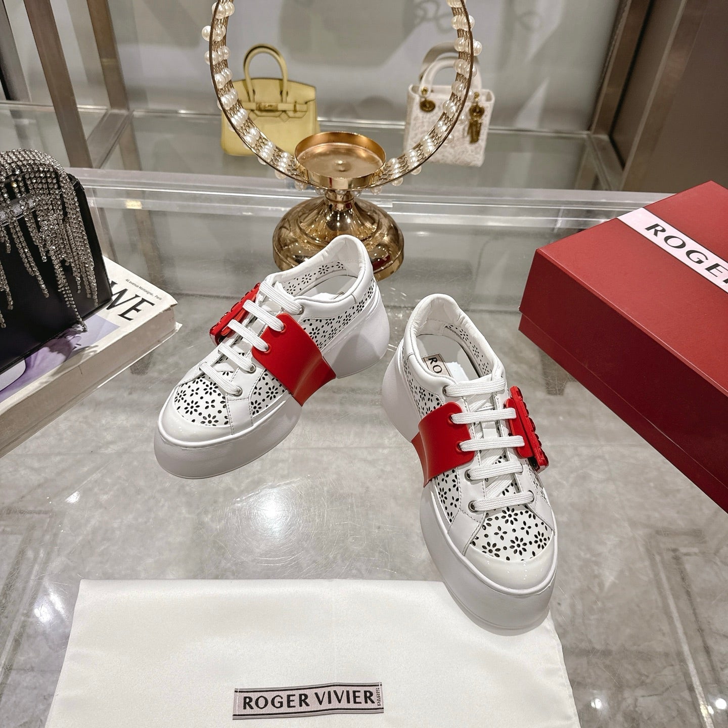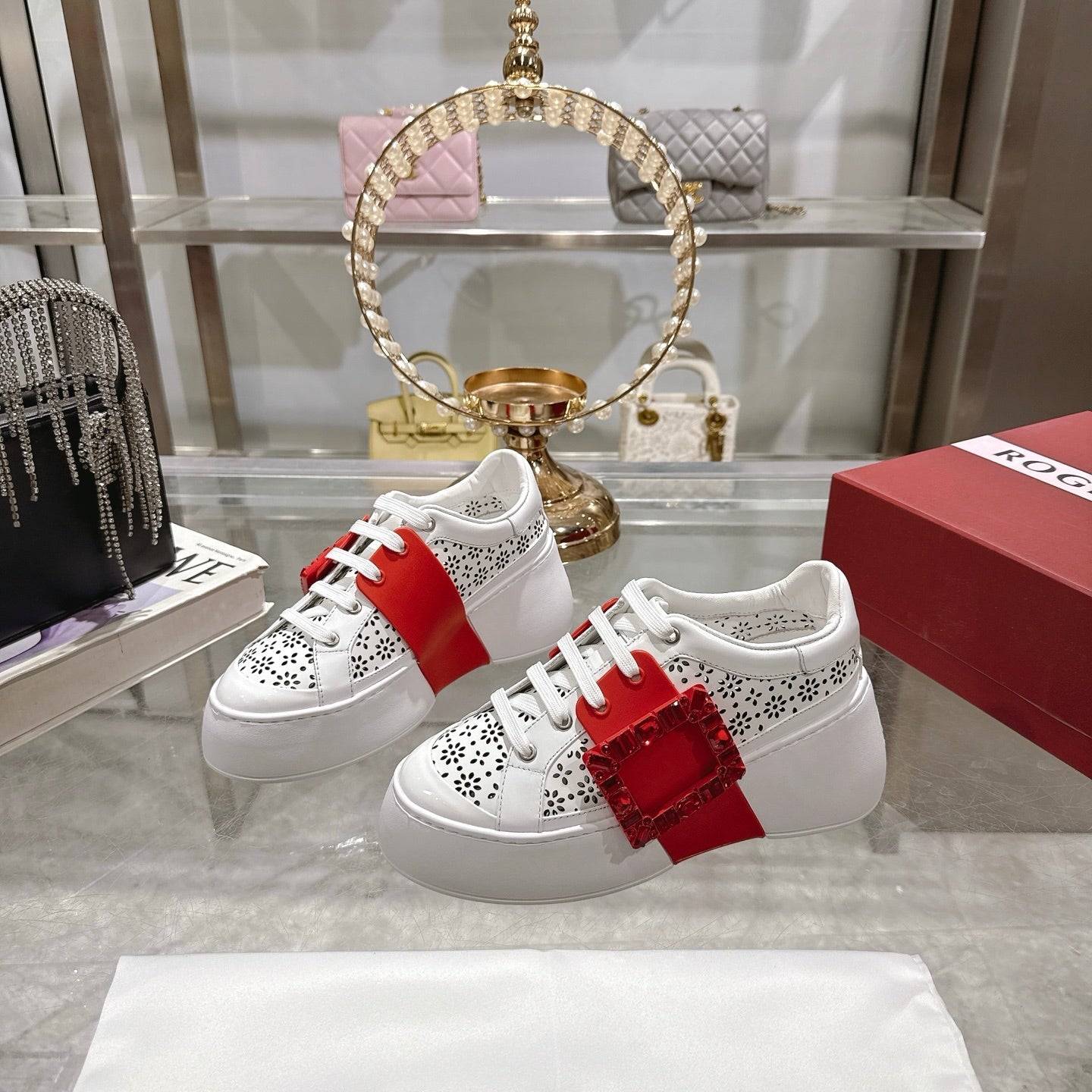 Viv 25 Square Buckle Platform White Red Cowhide 262979