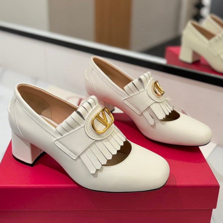 VT 2025 Signature Heeled Loafer Ivory Calf Leather 295068