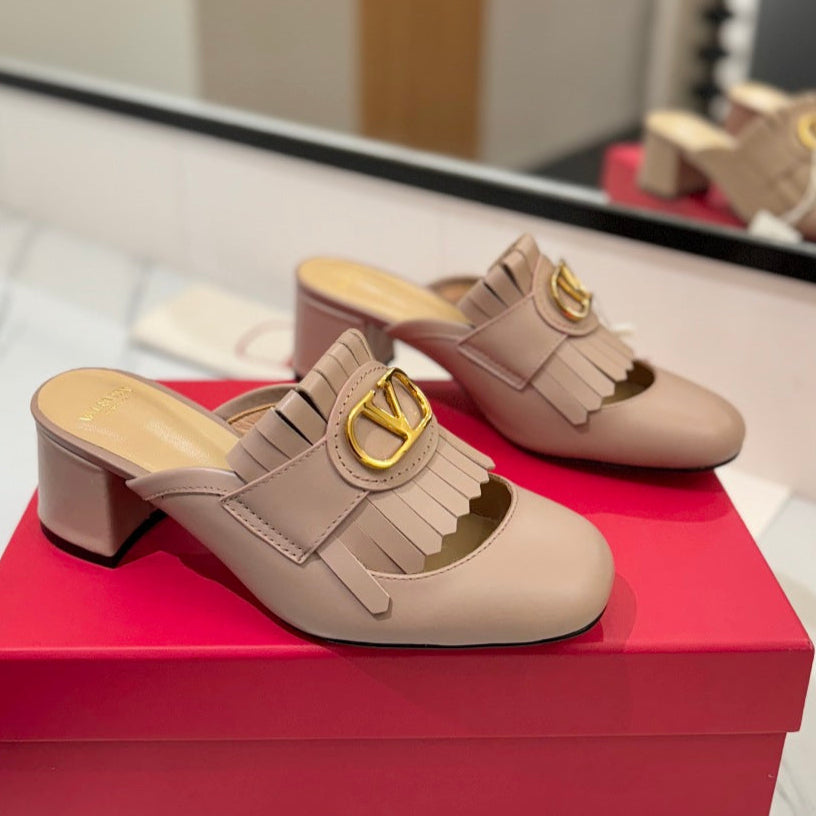 VT 2025 Signature Heeled Mule Pure Beige Calf Leather 295077