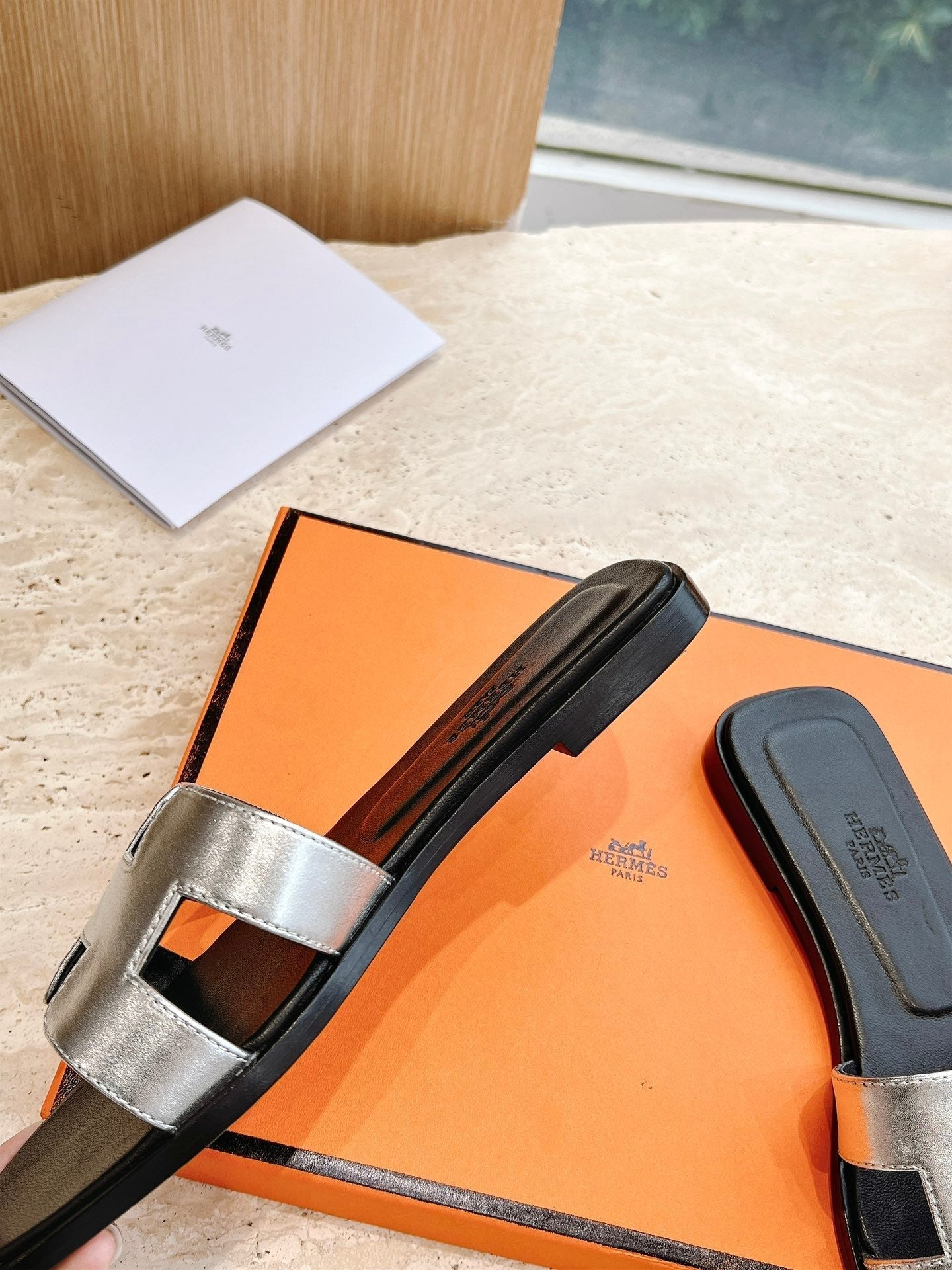 HM 25 Oran Sandal Black Silver Metalic Calfskin