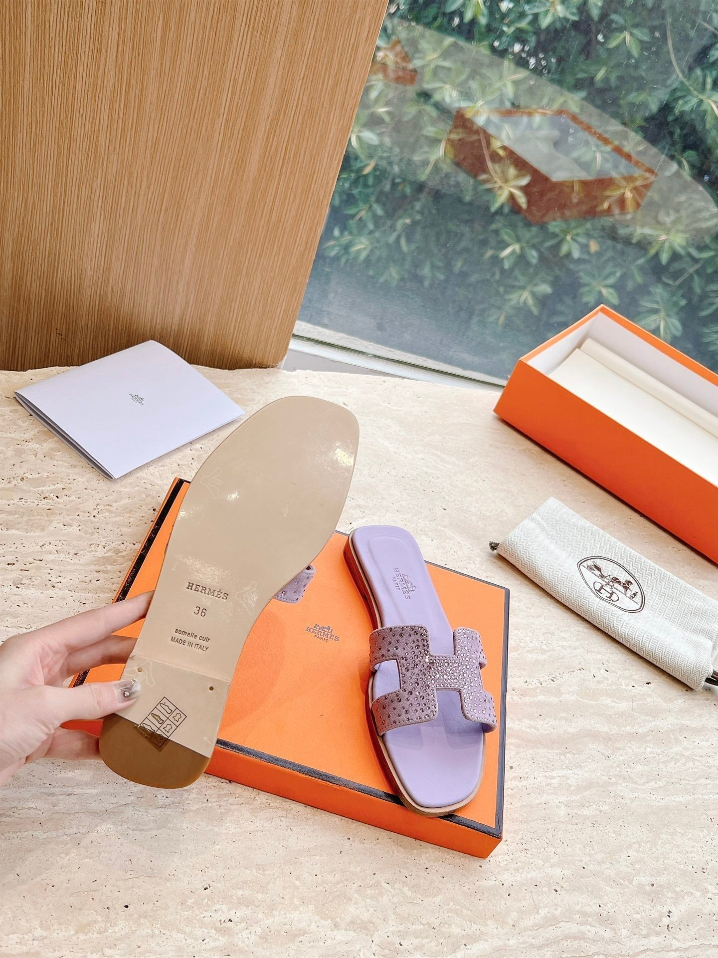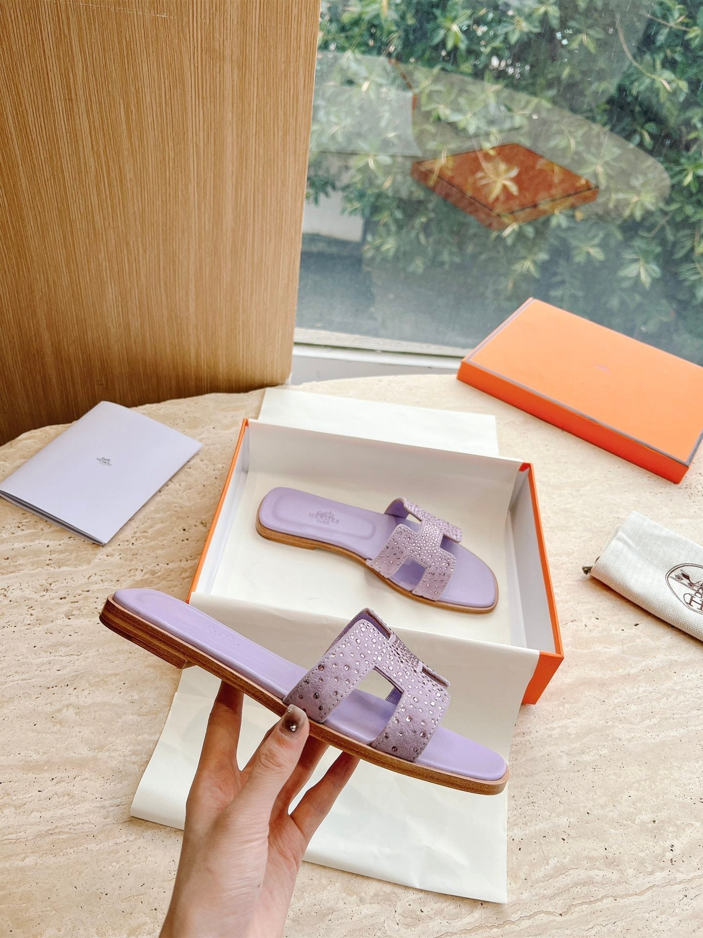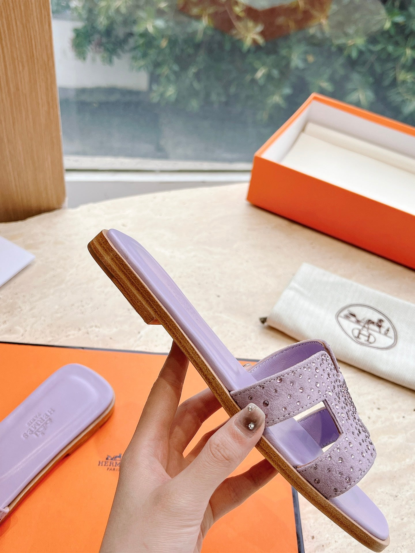 HM 25 Oran Sandal Violet Calfskin Crystal Embellished