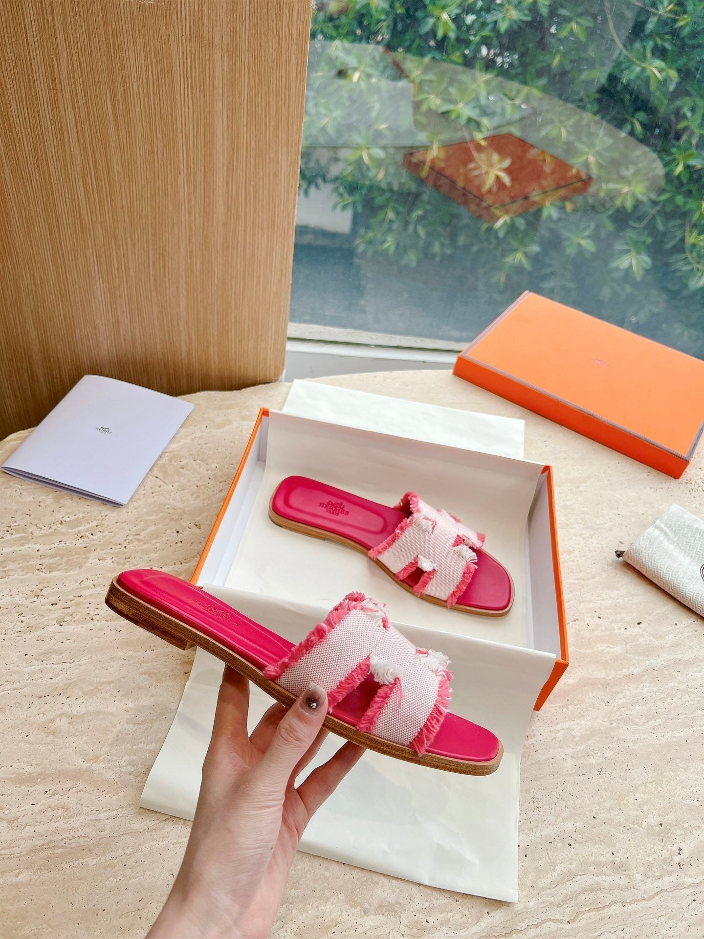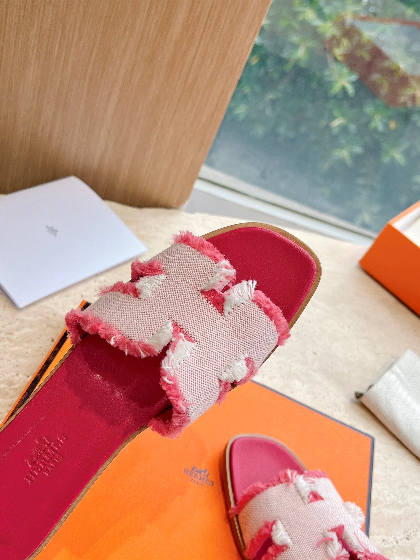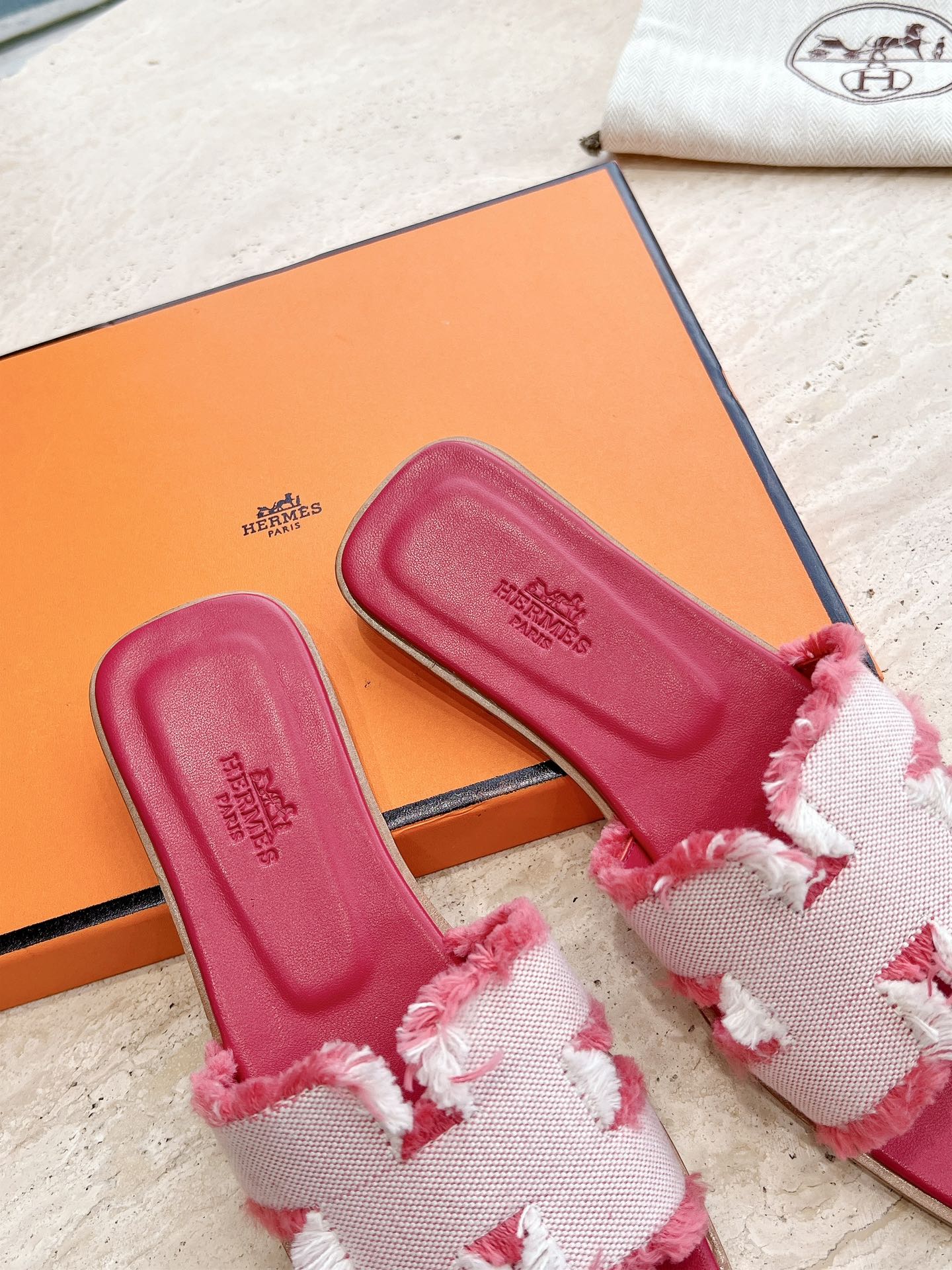 HM 25 Oran Sandal Dark Red Calfskin White Denim