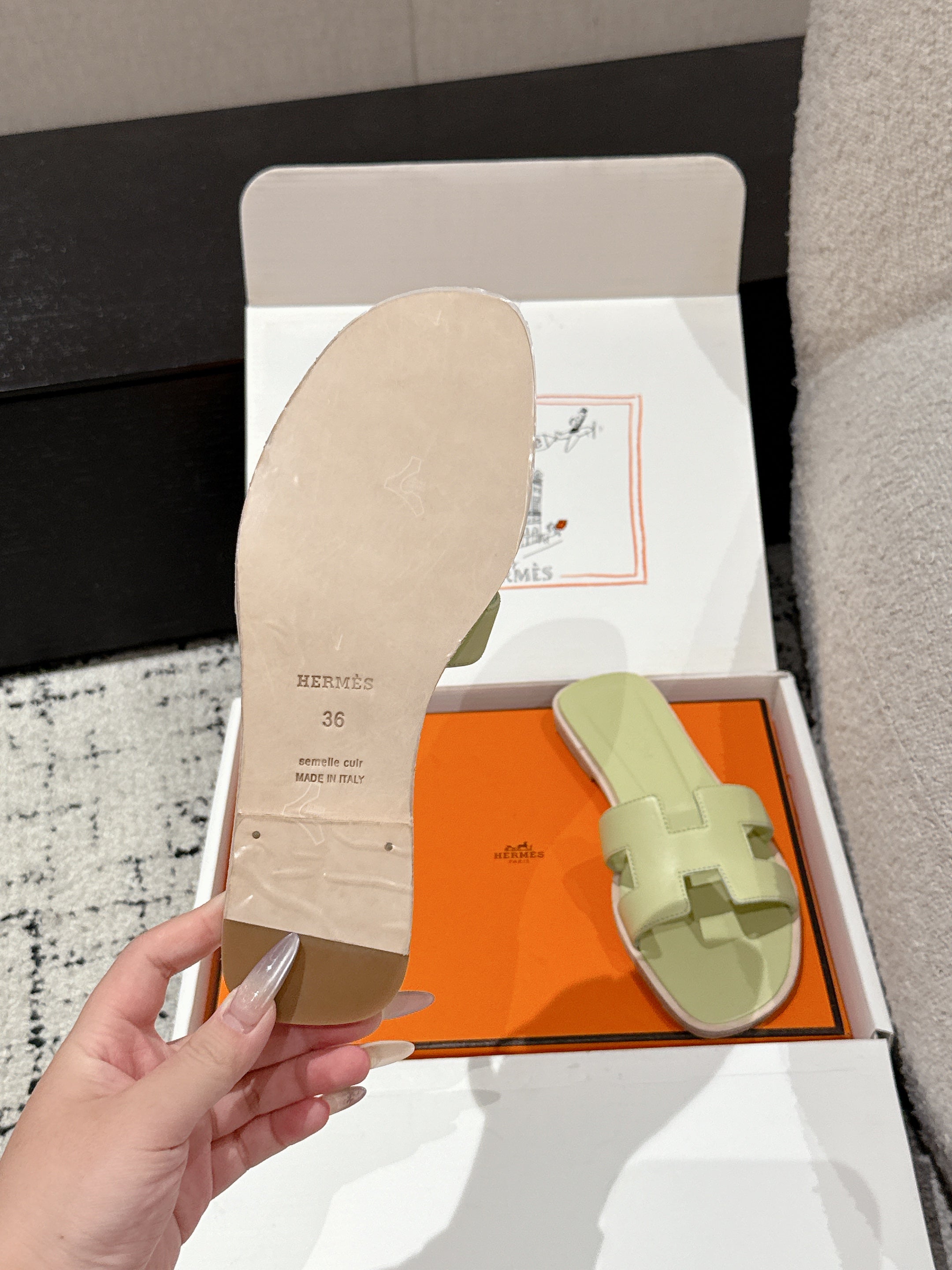 HM 25 Oran Sandal Light Green Calfskin