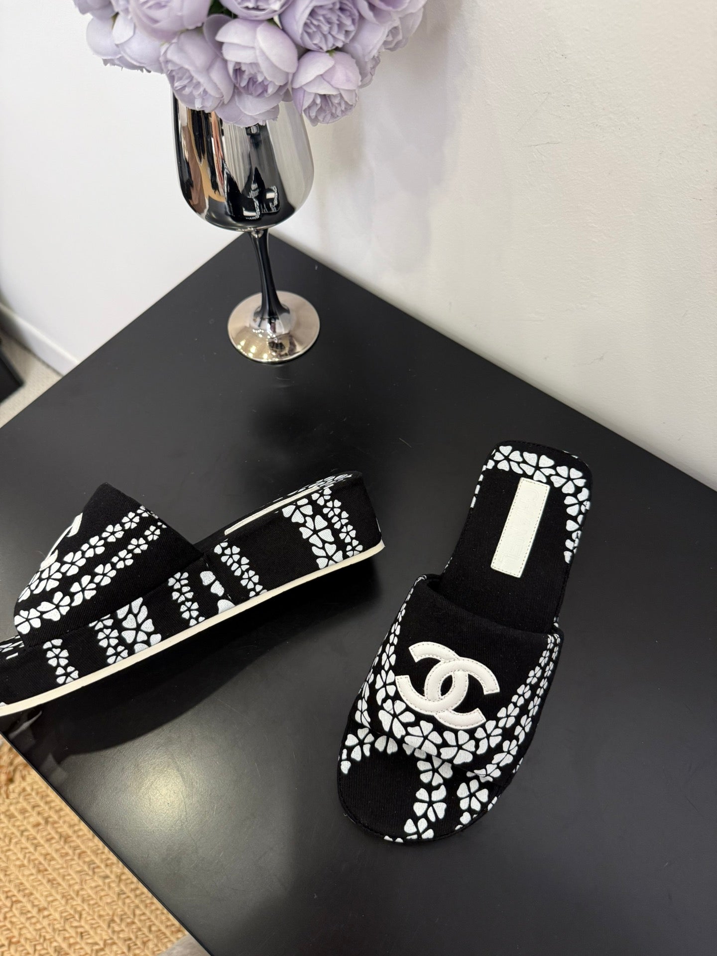 CC 25 Thong Slippers Black Woolen Cloth 311099