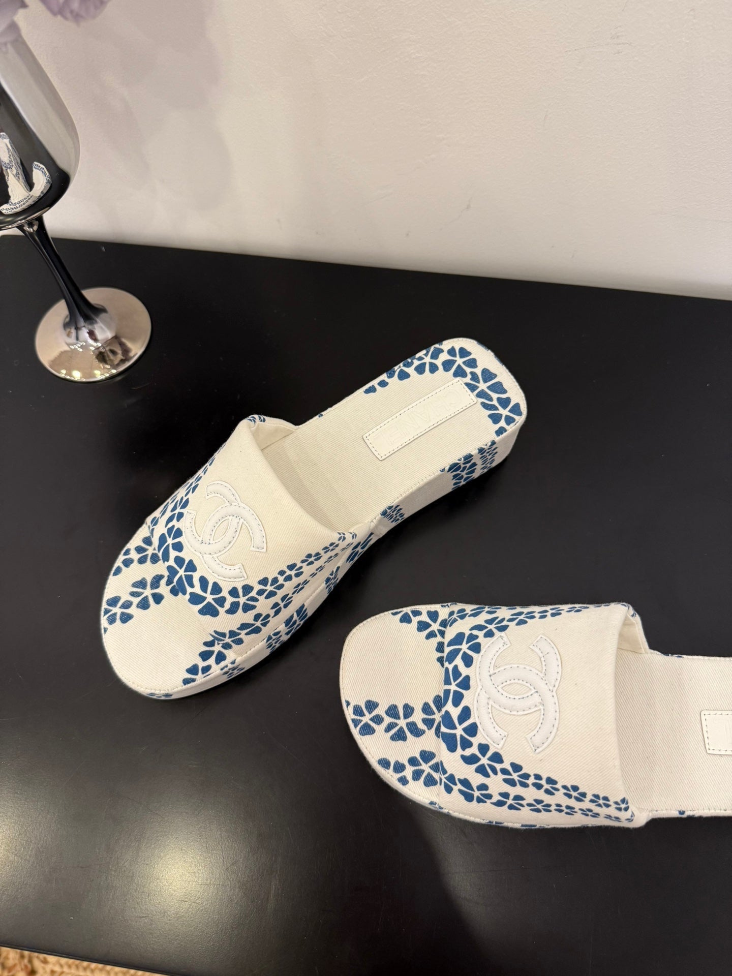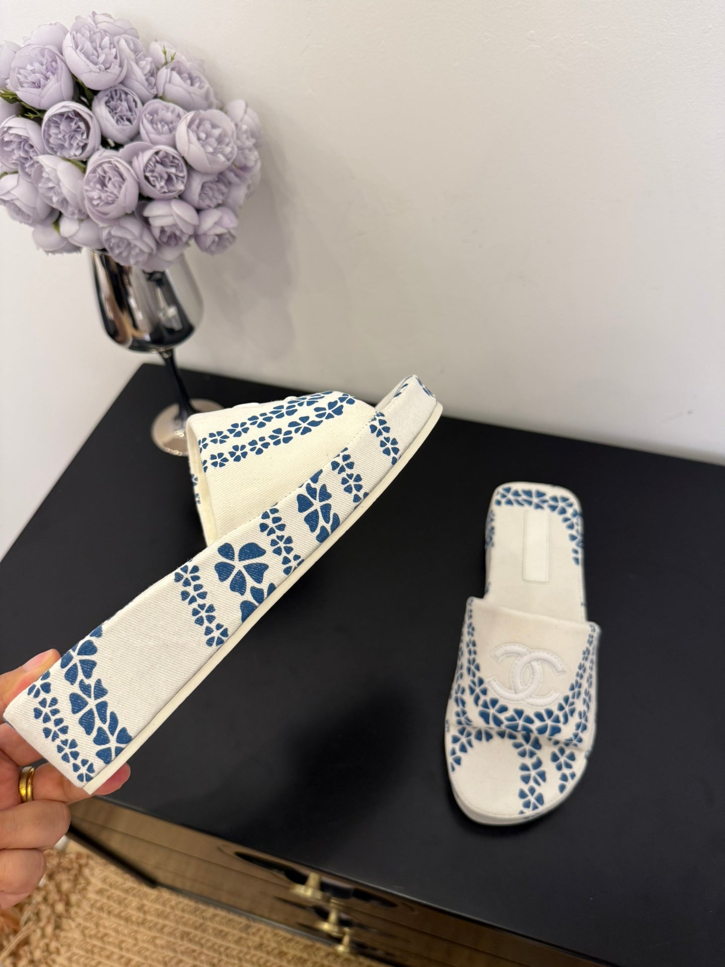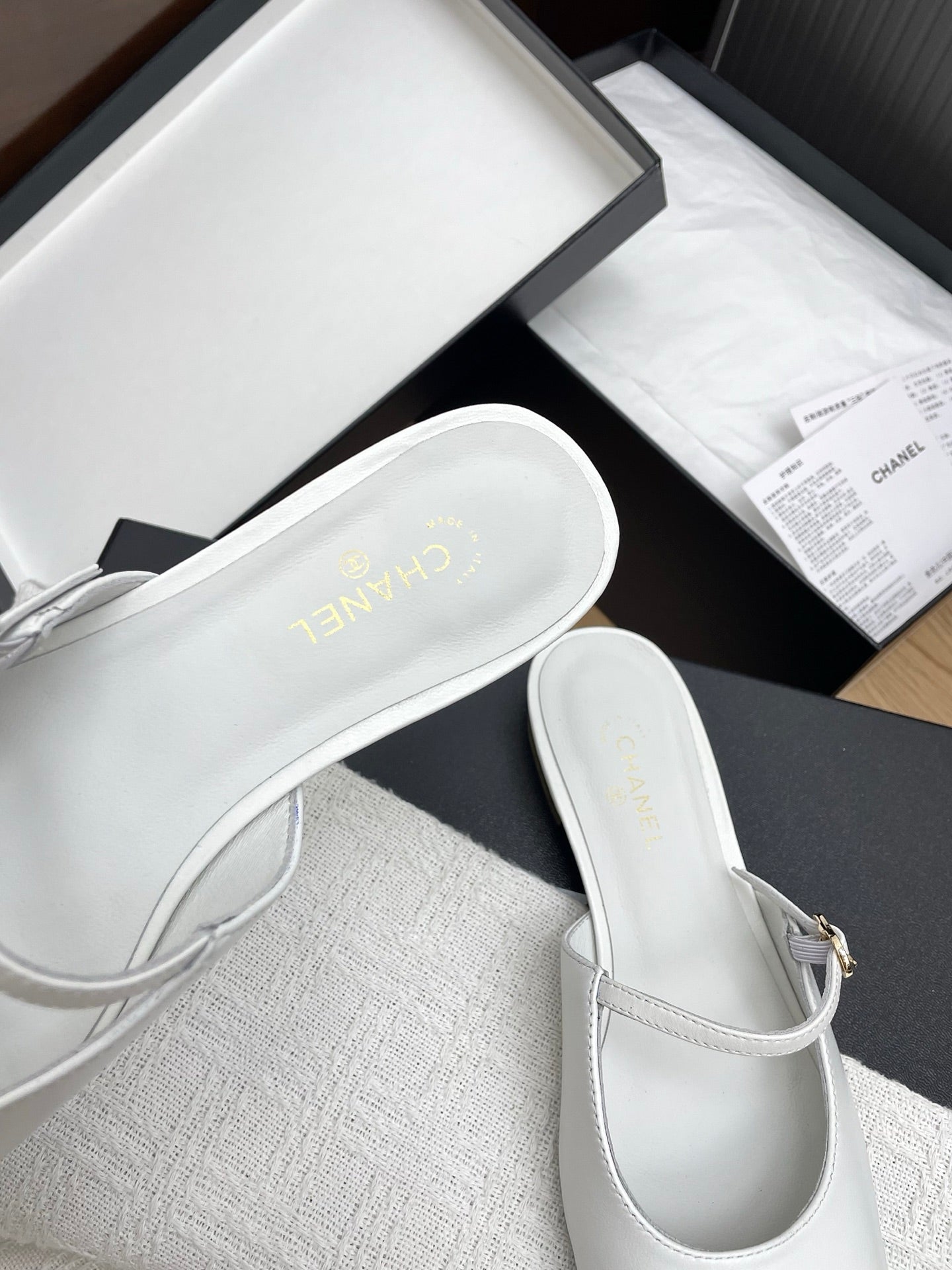 CC 25 Flower Thong Slippers White Cowhide 233415