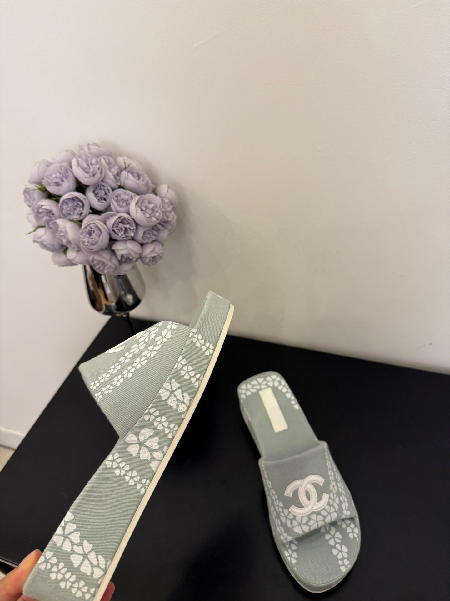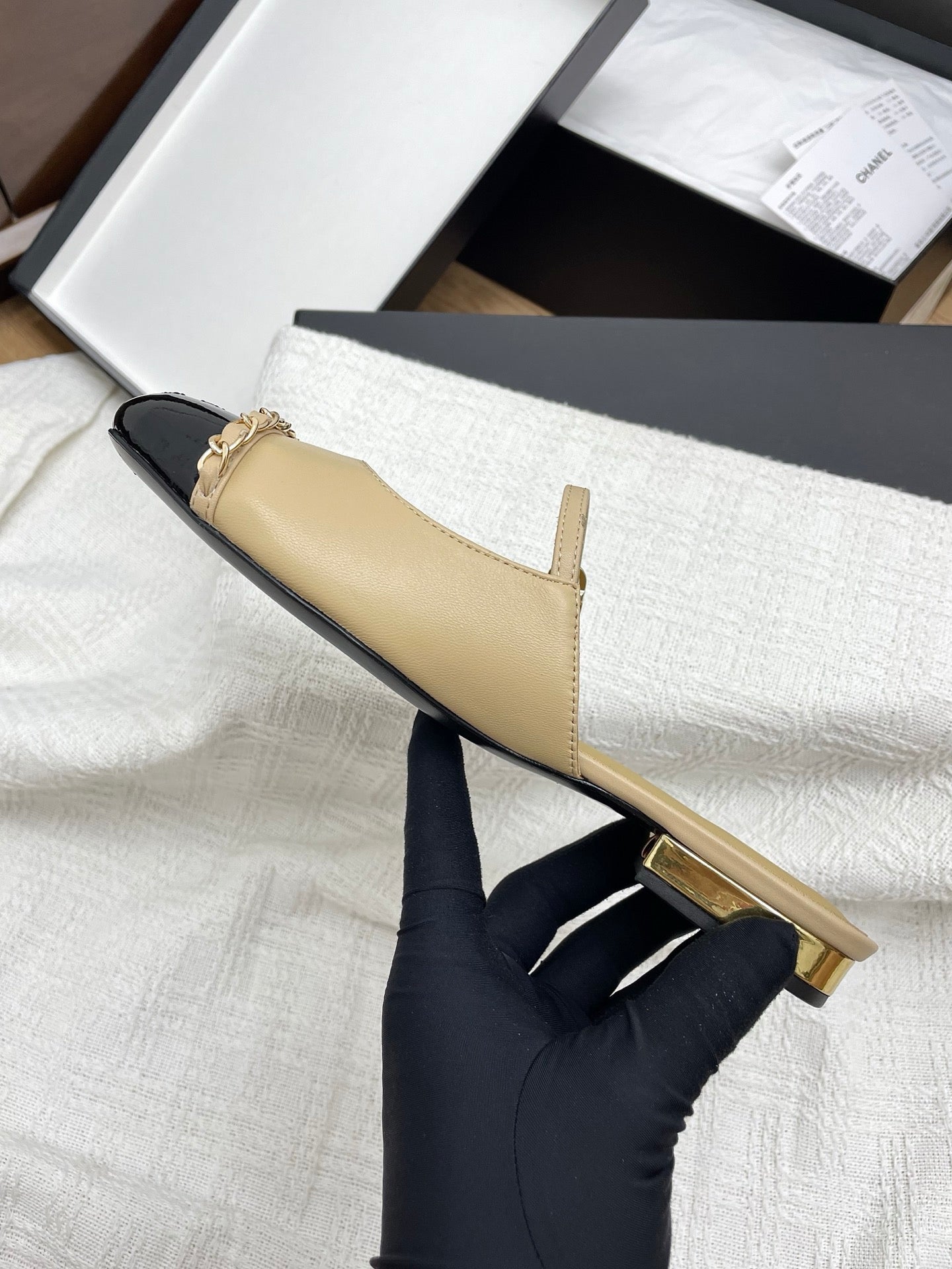 CC 25 Flower Thong Slippers Beige Cowhide 233417