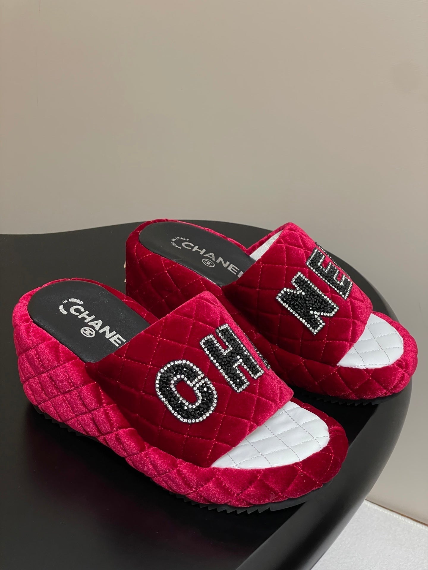 CC 25 Platform Slippers Red Velvet Sheepskin 334238