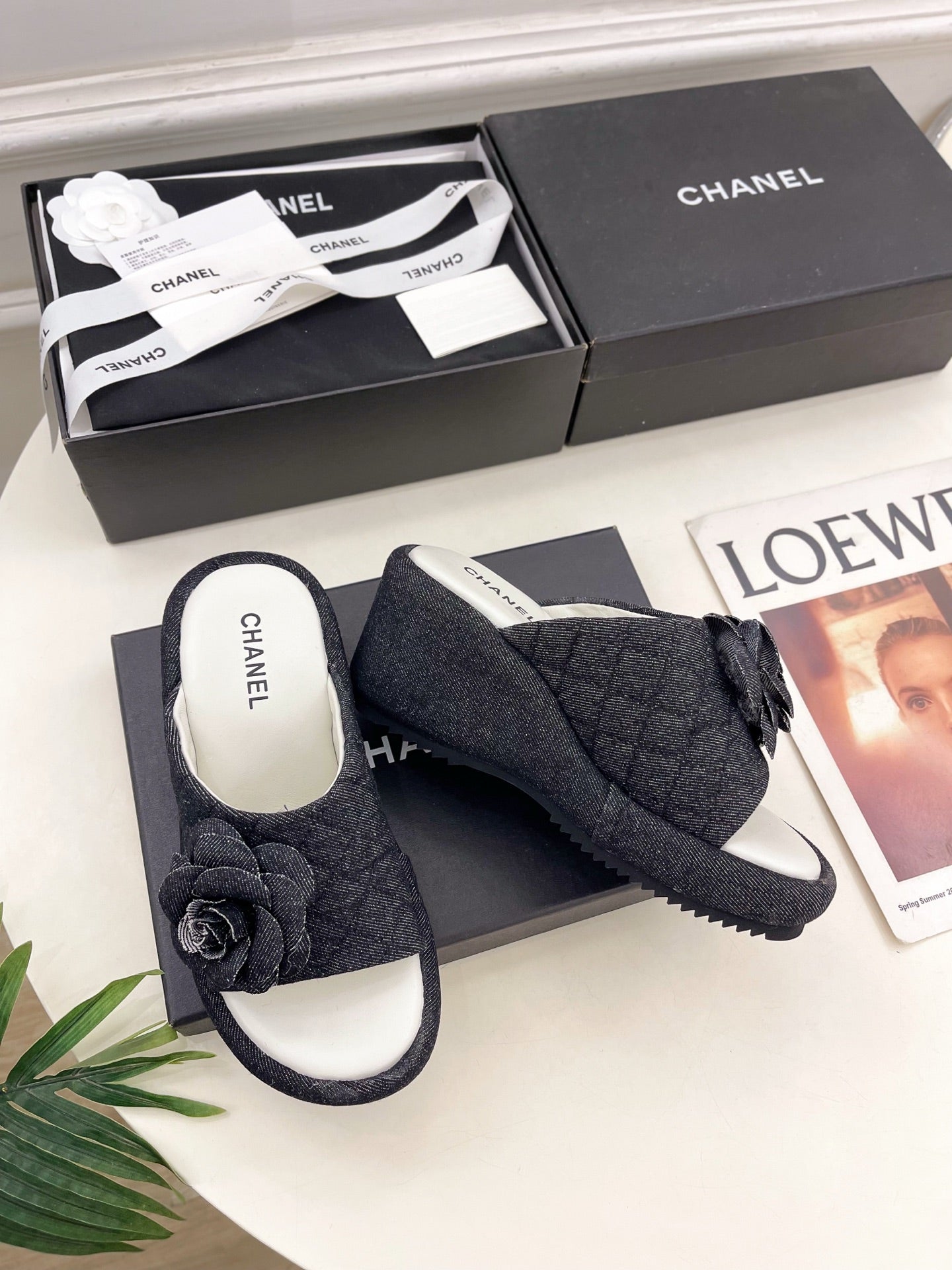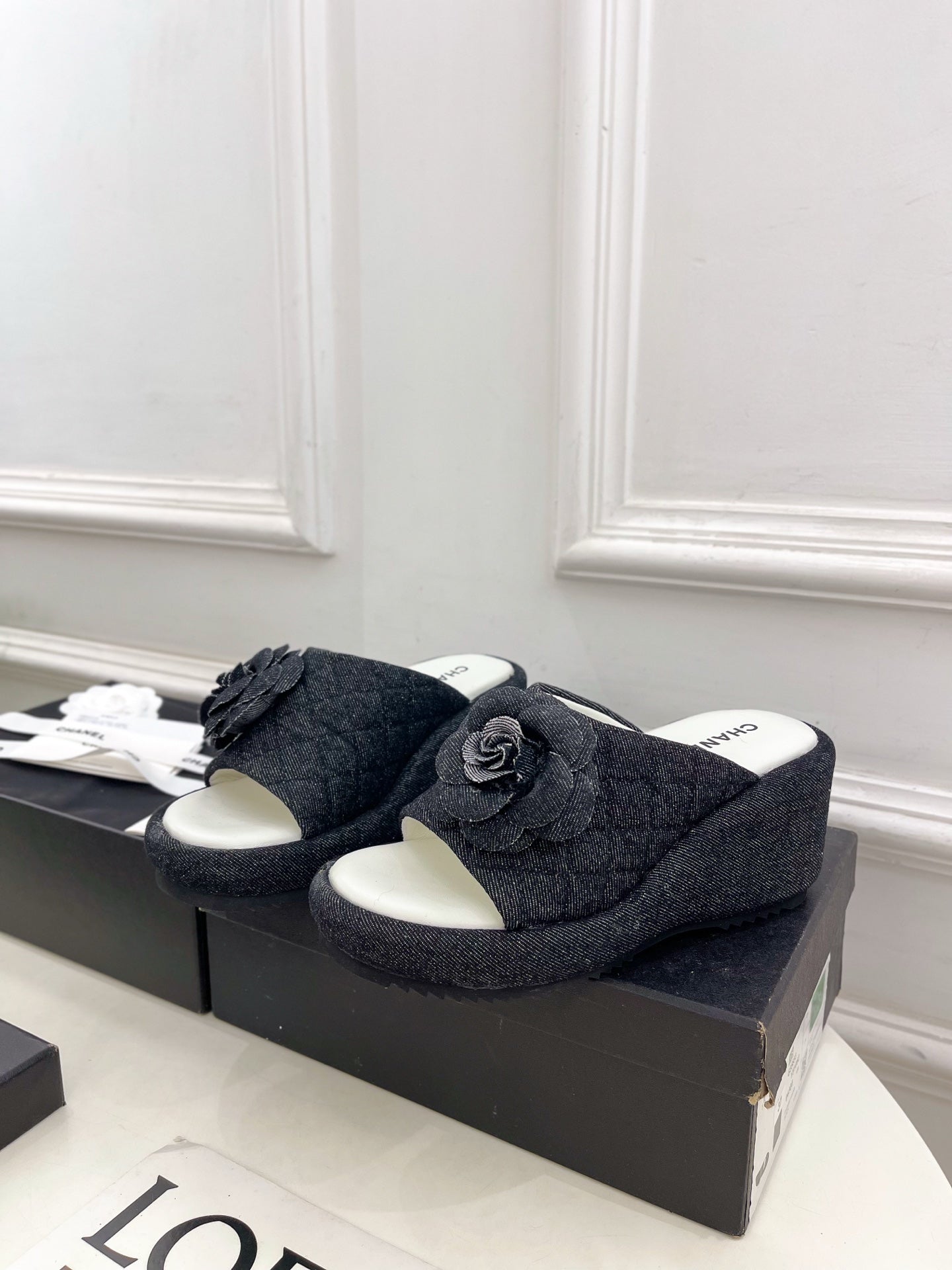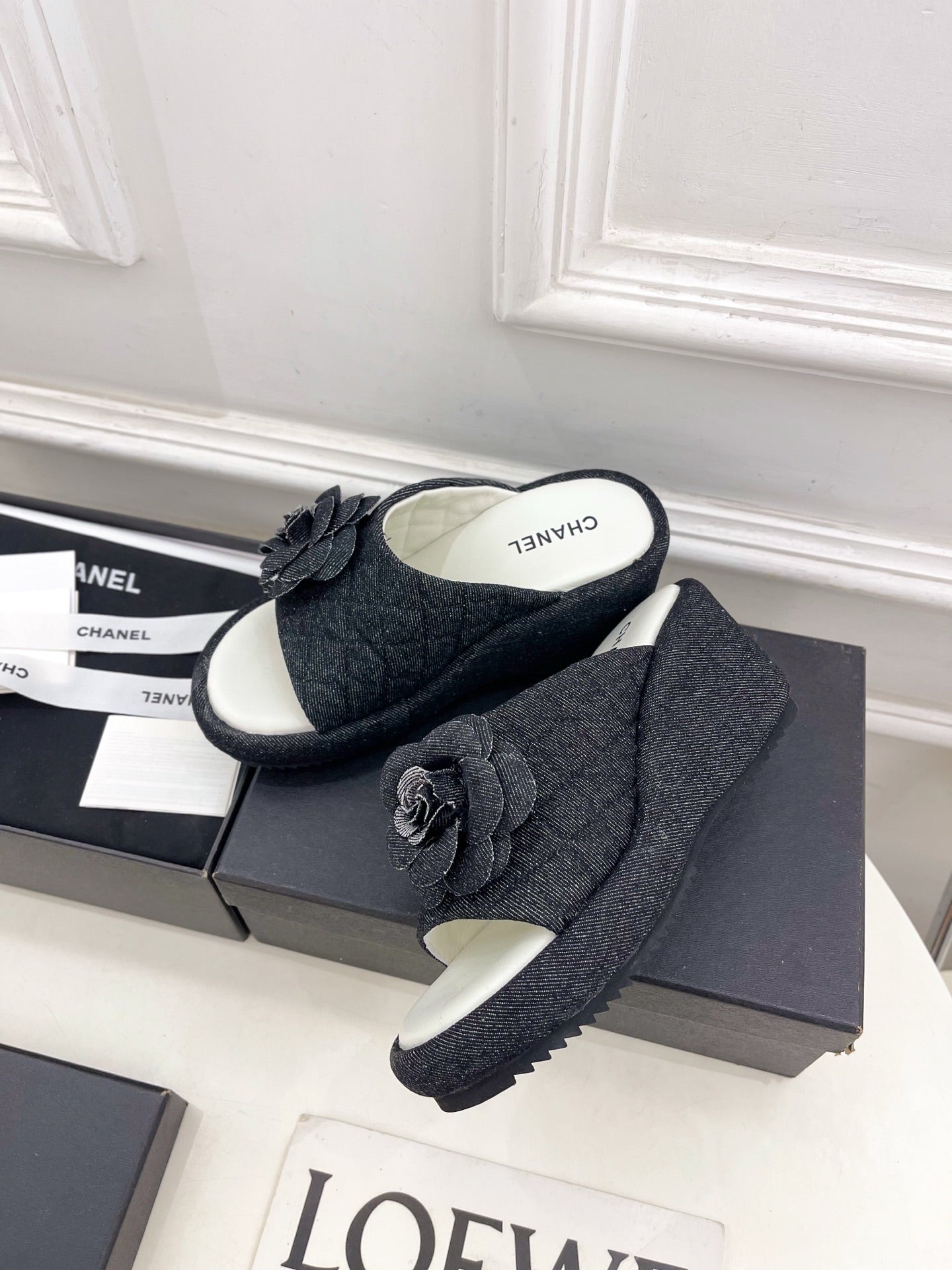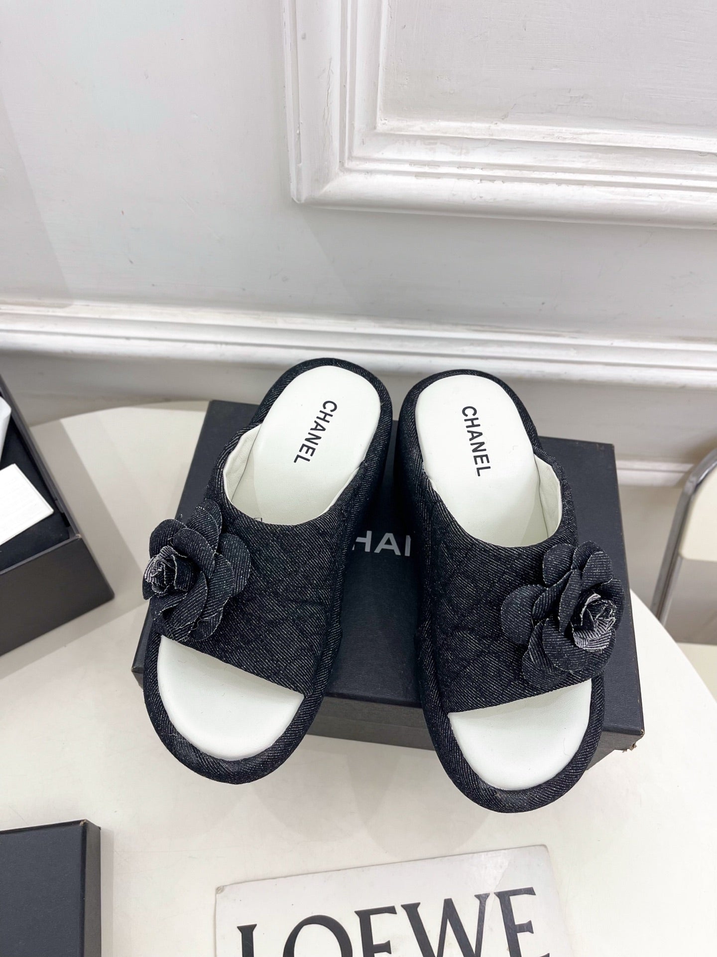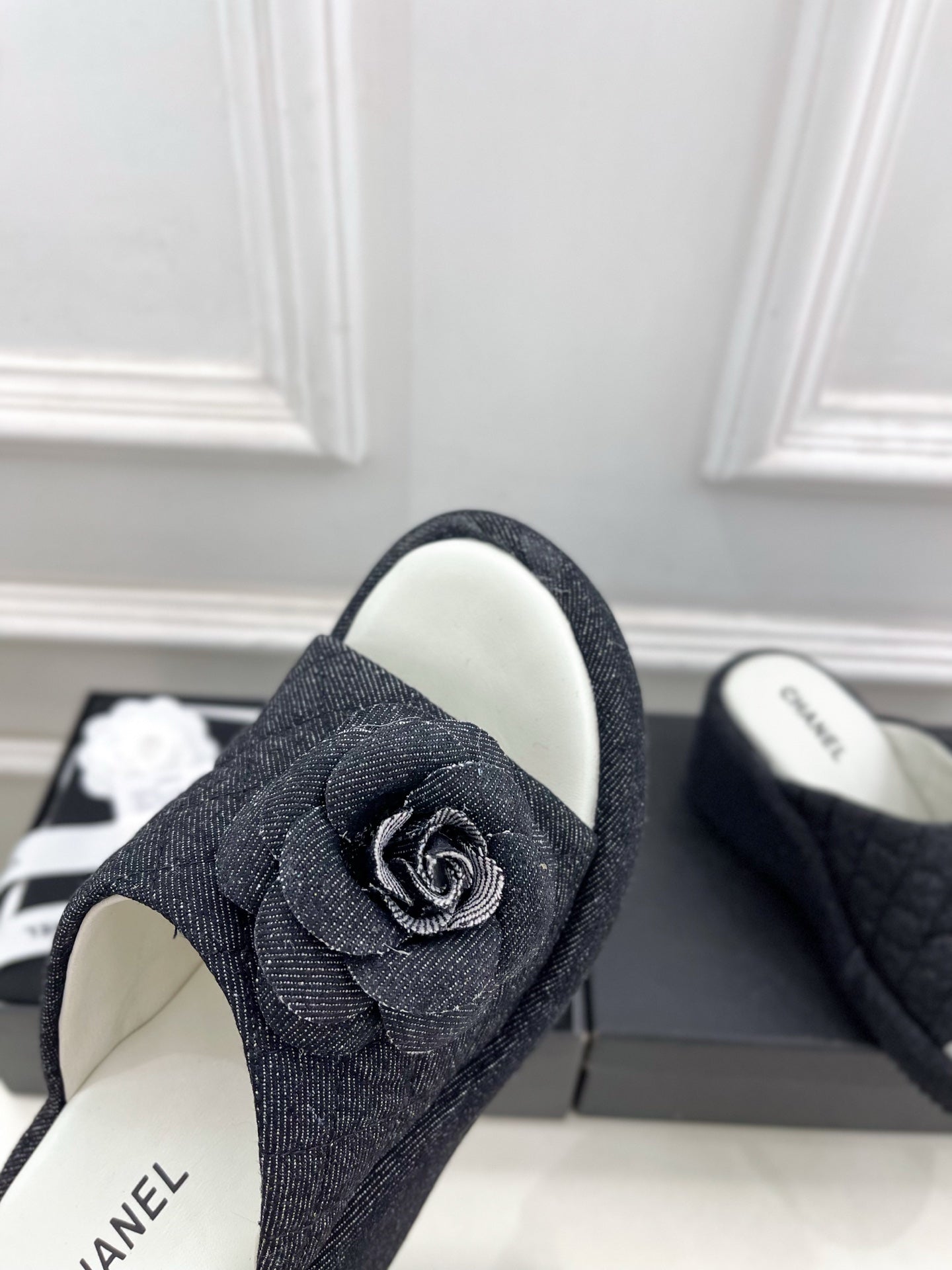 CC 25 Platform Slippers Black Velvet Sheepskin 334240