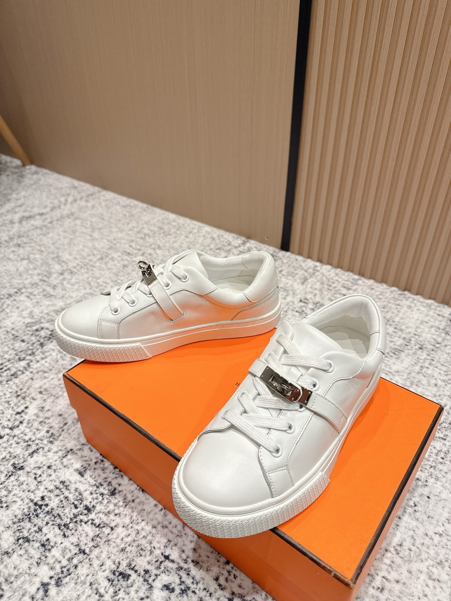 HM Casual Sneakers Sliver Buckle Taupe With White Leather