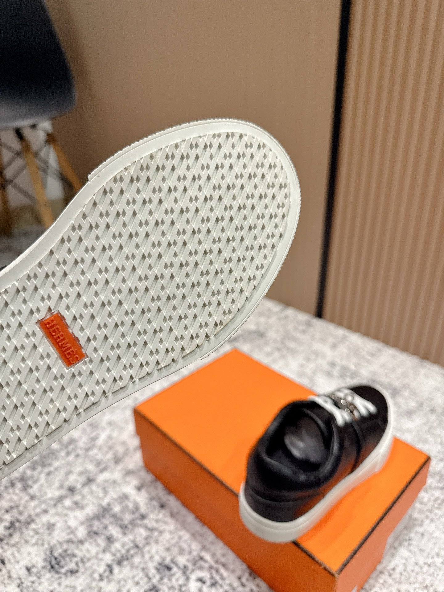 HM Casual Sneakers Sliver Buckle Black White Leather