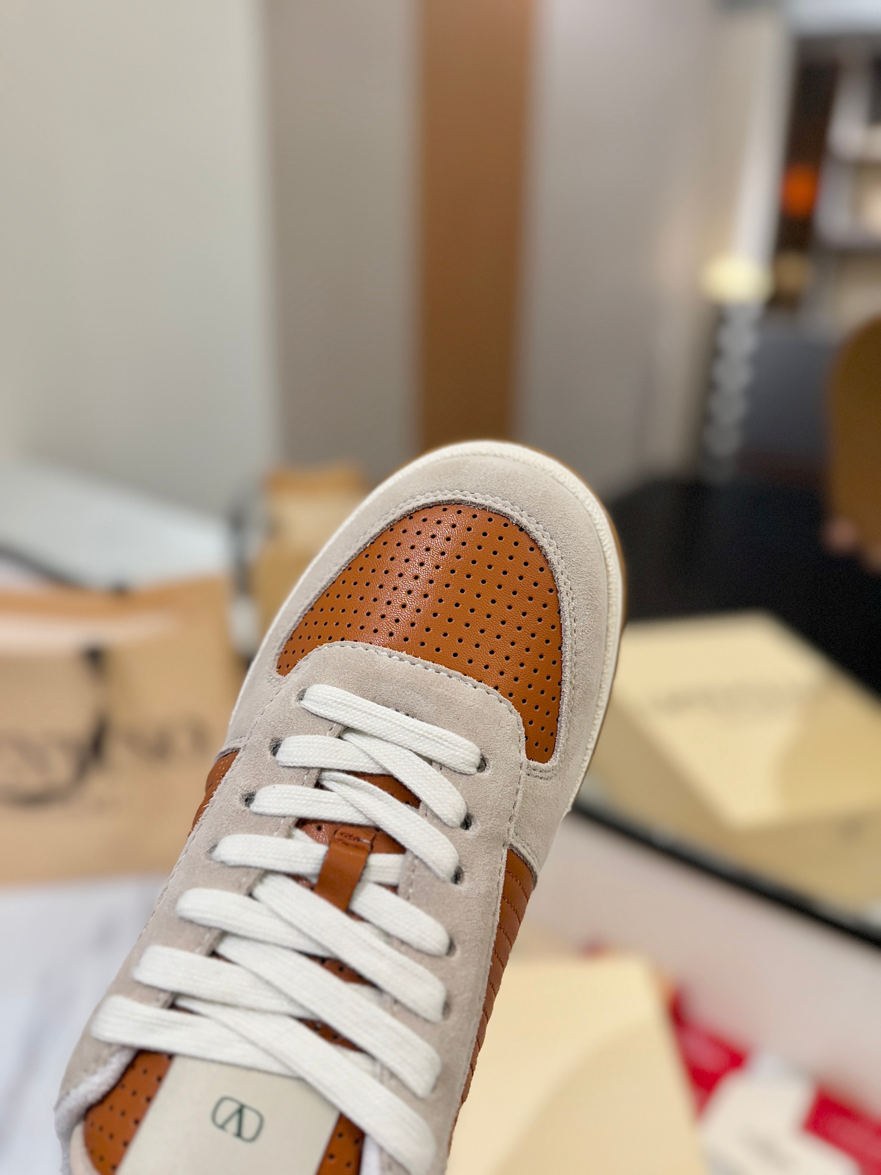 VT 25S Couple Sneakers White Tan Green Calfskin Suede 563100