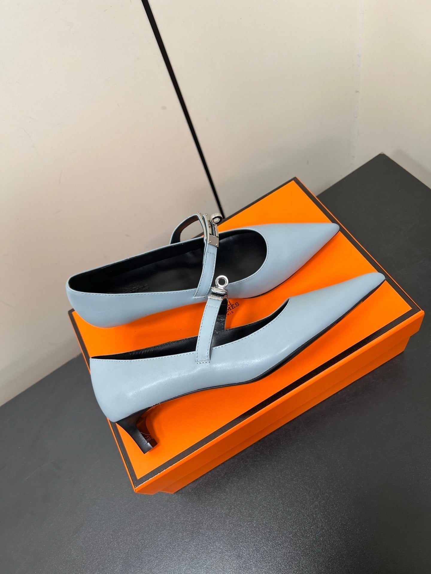 HM 25C Kelly Ballet Flat Baby Blue Calfskin 210296
