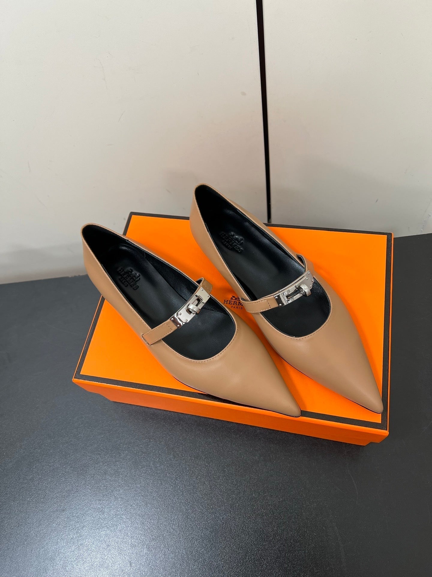 HM 25C Kelly Ballet Flat Brown Calfskin 208269
