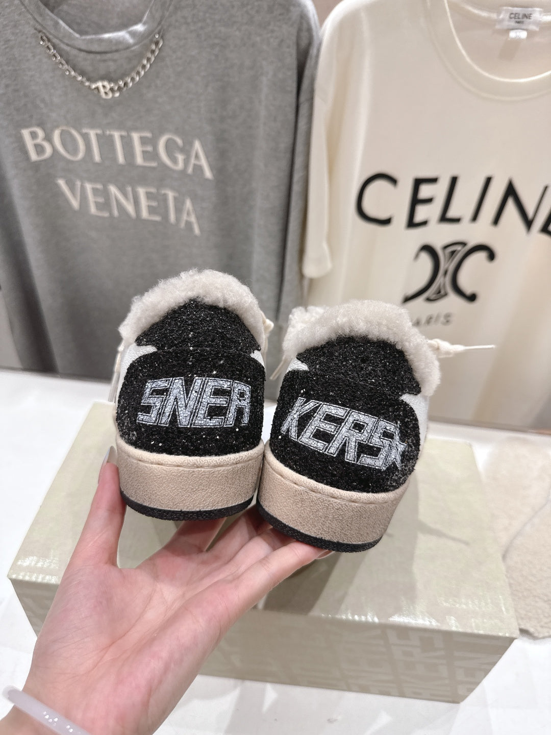 Golden Goose 2025 Wool-Lined Dirty Sneaker Ivory Black mix Gold Suede 491646
