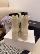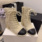 CC 26 Quilted Lace-up Boot Cream Black Suede Calfskin