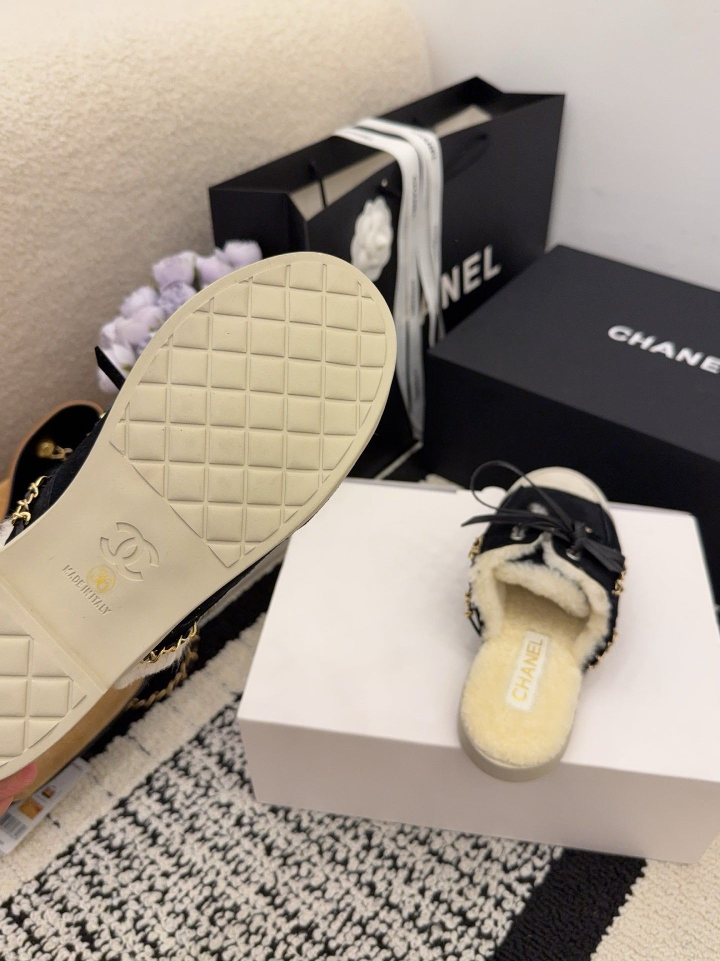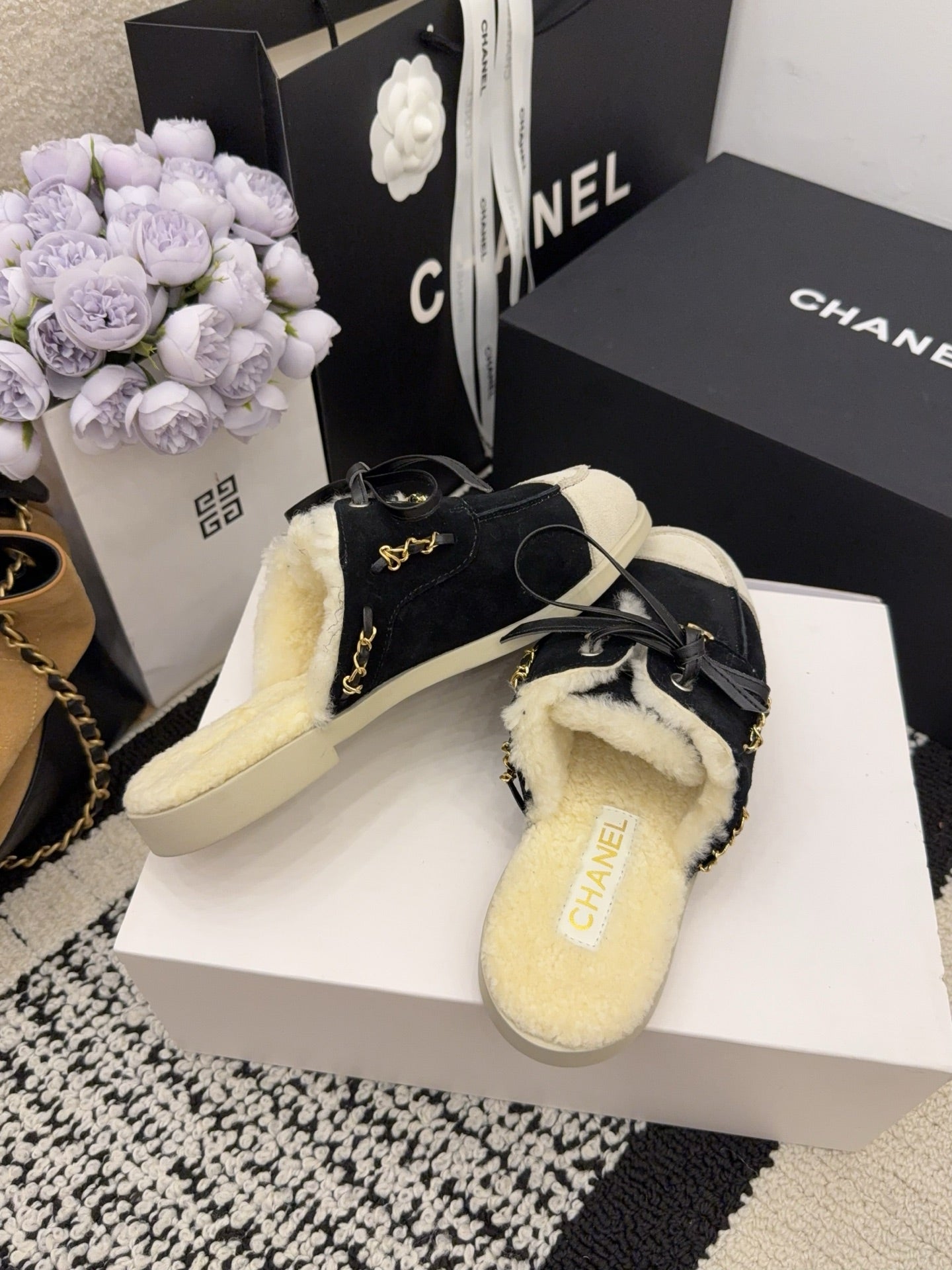 CC 26 Shearling Slip-on Loafer Black White Suede Wool 588718