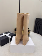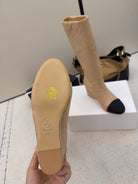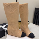 CC 26 Wedge Boot With Quilted Camellia Pattern Beige Black Fabric 589114