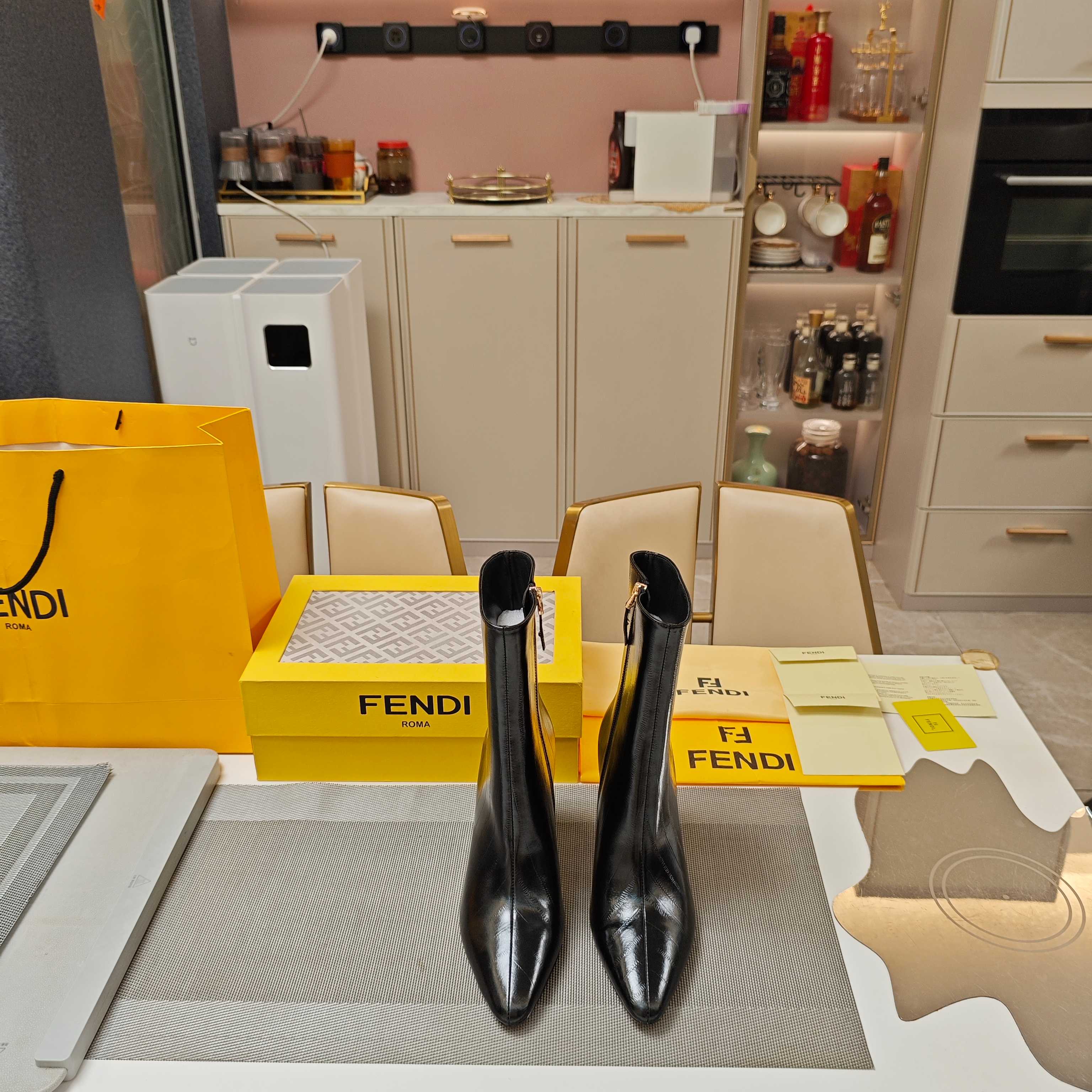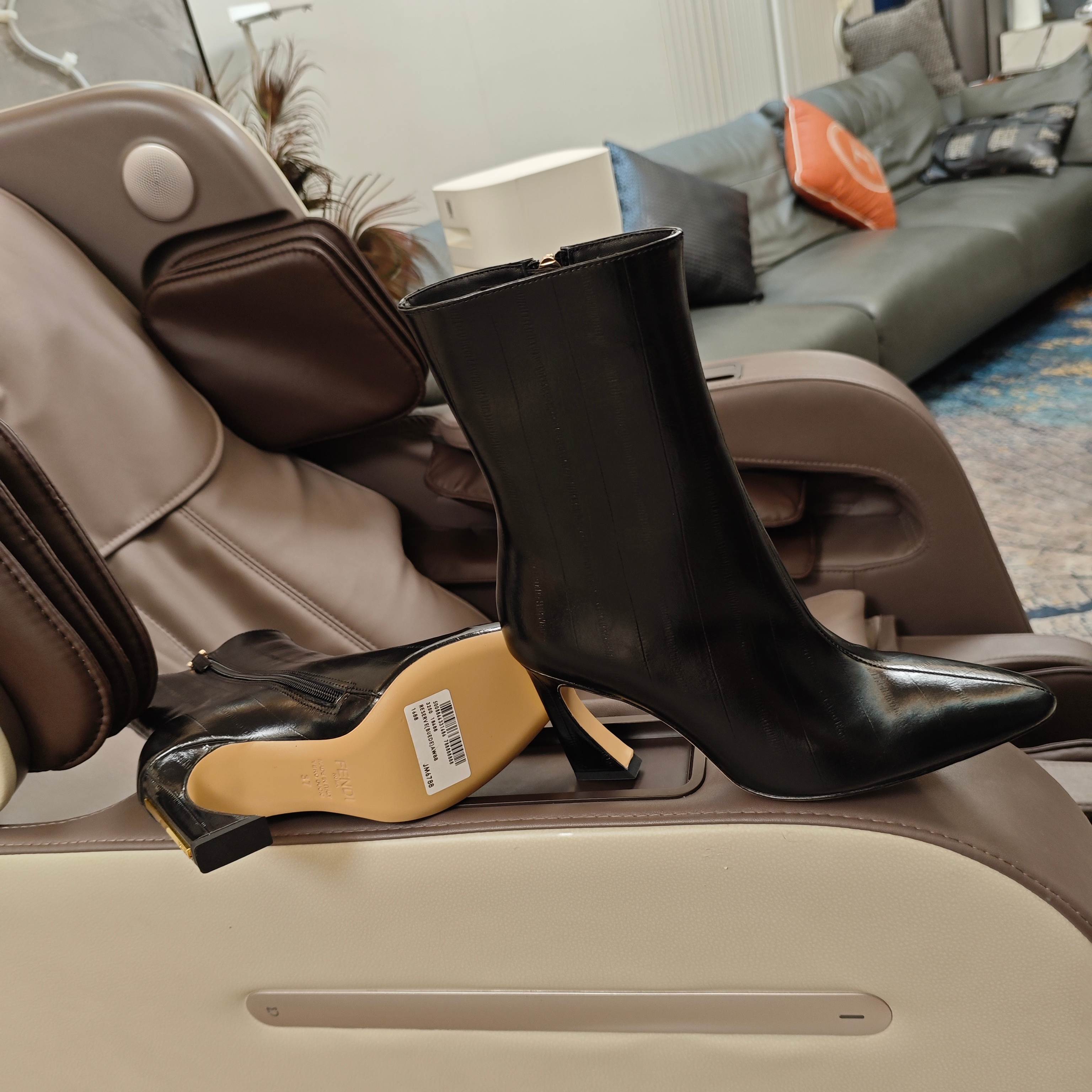 Fendi 25ss high-heeled boots black sheepskin 502714