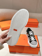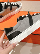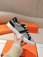 HM 25ss Kelly Buckle Sneakers Black Gray Cowhide Canvas 577490