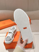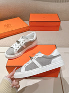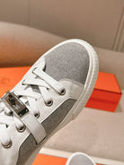 HM 25ss Kelly Buckle Sneakers White Gray Cowhide Canvas 577491