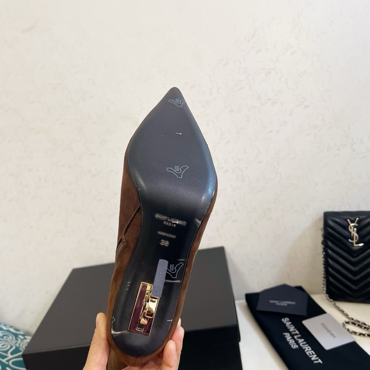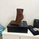 YSL 2025 Opyum 110mm Heel Ankle Boot Brown Suede 575010