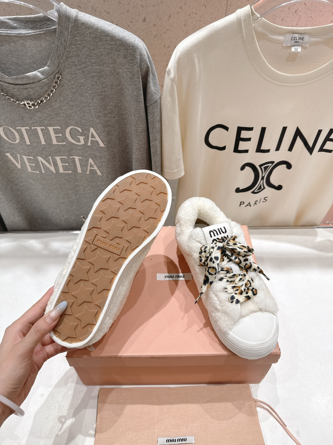 MiuMiu 25 Sneaker White Leopard Cowhide Wool 535583