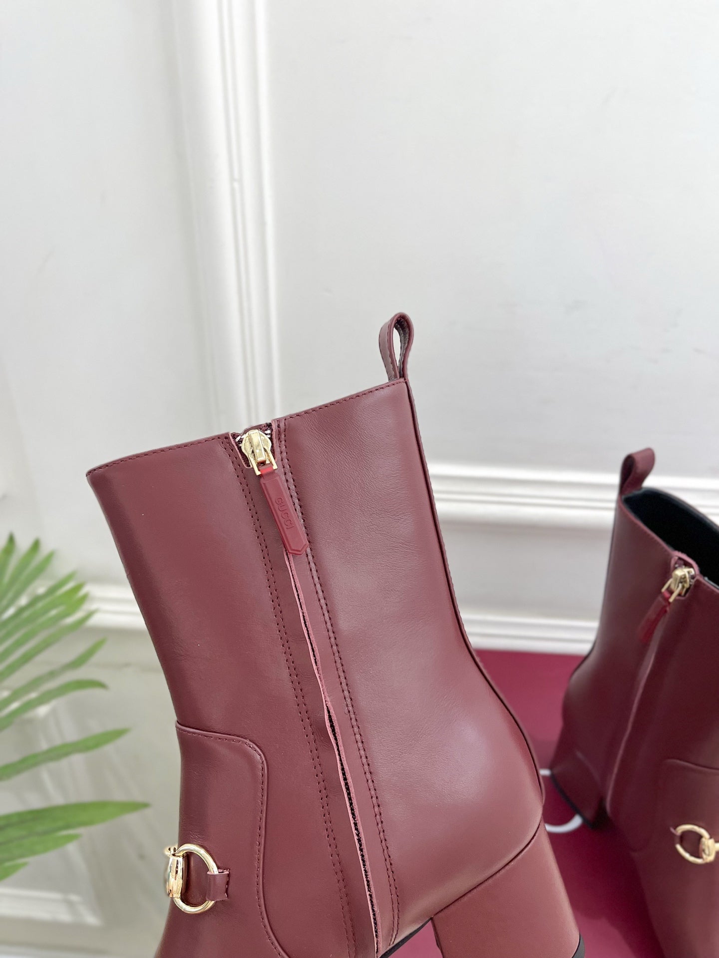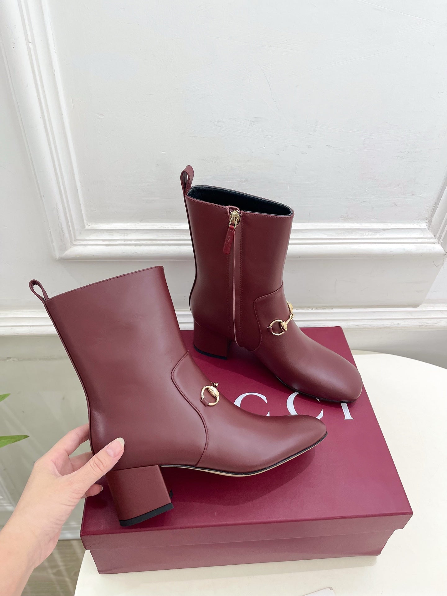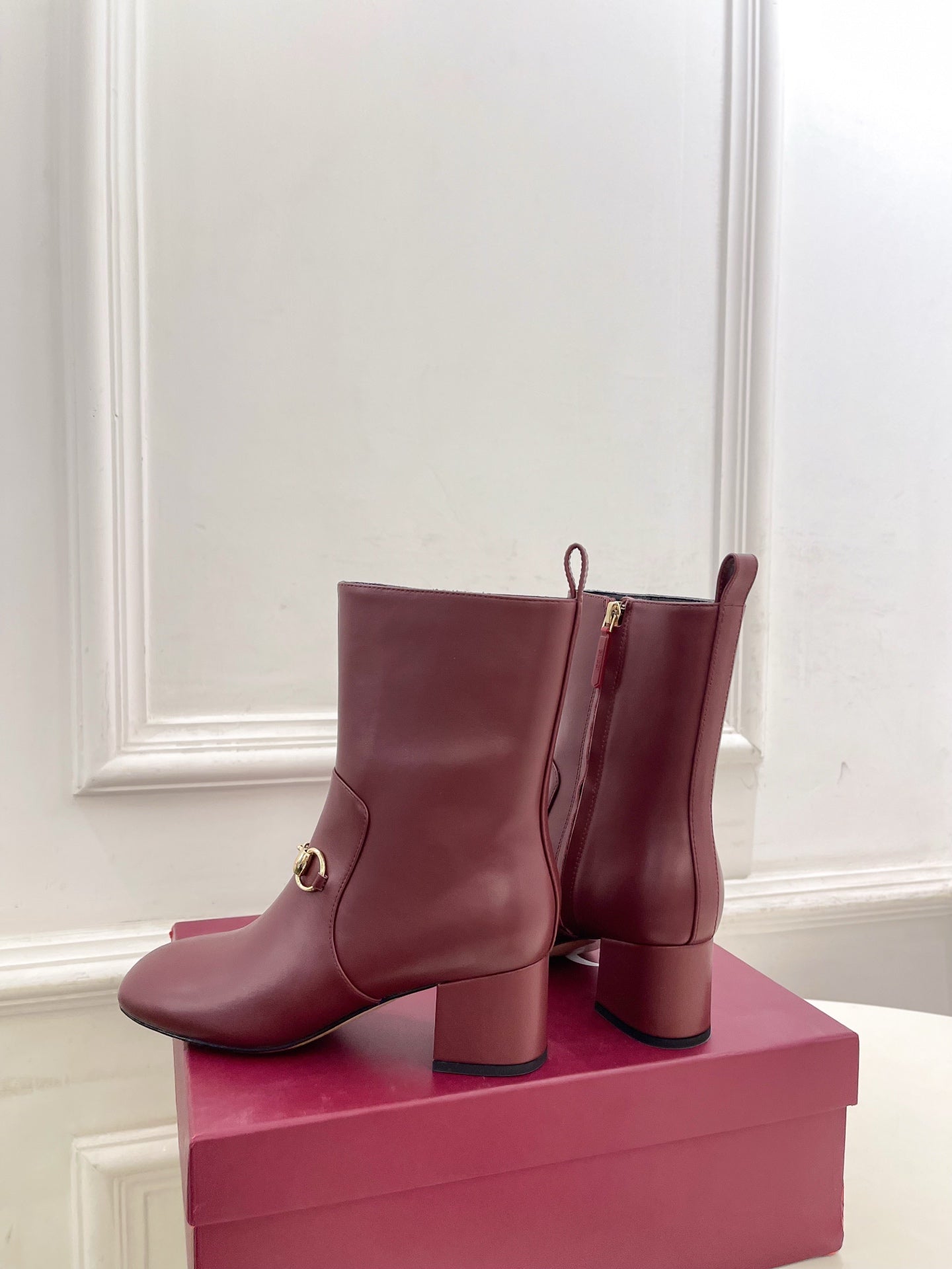 GG horsebit chunky heel ankle boots burrgundy calfskin 536060